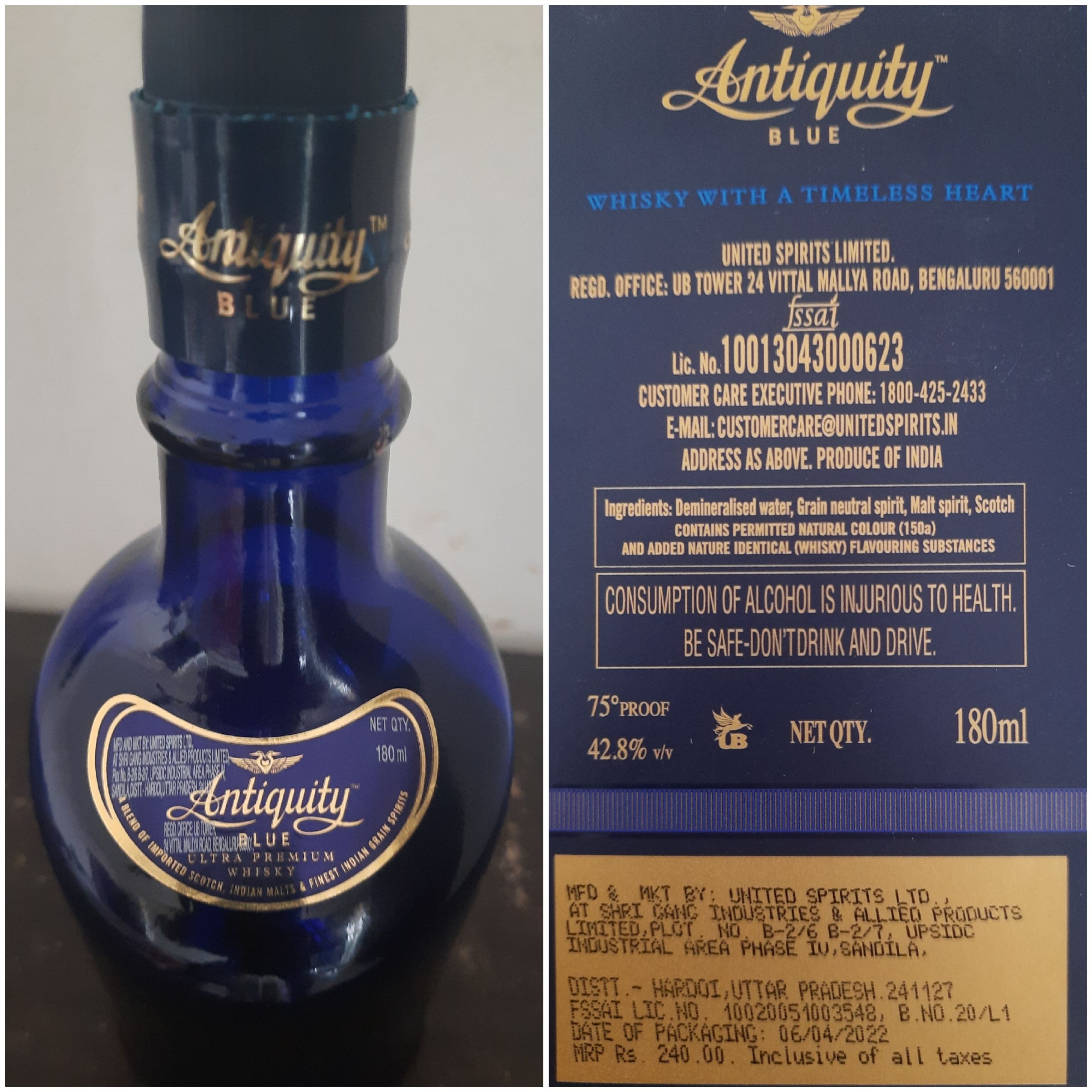 I tried Antiquity Whisky in in May, 2022. The MRP on the bottle at the time of purchase was Rs.240.