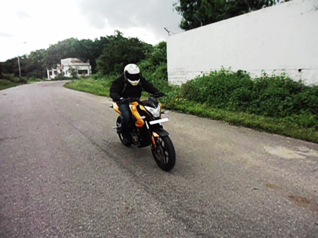 This I guess is the section where the 200 NS was really meant and made to outshine the previous models. Right from the pick-up and acceleration to the smooth universal delivery of power at all rpms, this piece of art is light years ahead when compared to its competition in the similar price range. I kept shifting gears up just for the sake of it as the power never really felt to saturate upward of the fourth gear. I know this is unbelievably smooth and inconceivably refined because I have owned a Pulsar 180 before. Though vibrations on Pulsars were never as evident as they are on a TVS Apache, this was something out of this world. The 199.5 cc liquid cooled 4 valve engine churns out 23.52 Ps of power @ 9500 rpm with 18.3 Nm of max torque @ 8000 rpm. The power on board seems almost unending with the slick six speed gearbox making it an absolute delight. The perimeter frame combined with the new extended swing arm and the underbelly exhaust compounded by the mono-shock suspension aid to the mass centralization concept and lowers the center of gravity, thereby providing great stability while cornering. The 100/80 front and 130/70 rear Eurogrip tyres, though not as good as MRF, do their job dutifully by rendering adequate road grip. The triple spark plug promises 27% faster combustion than twin spark and 50% faster than a single spark technology. This combined with the 4-valve technology enable the engine to breathe easy and at the same time result in greater power, better fuel efficiency, and lesser emissions.