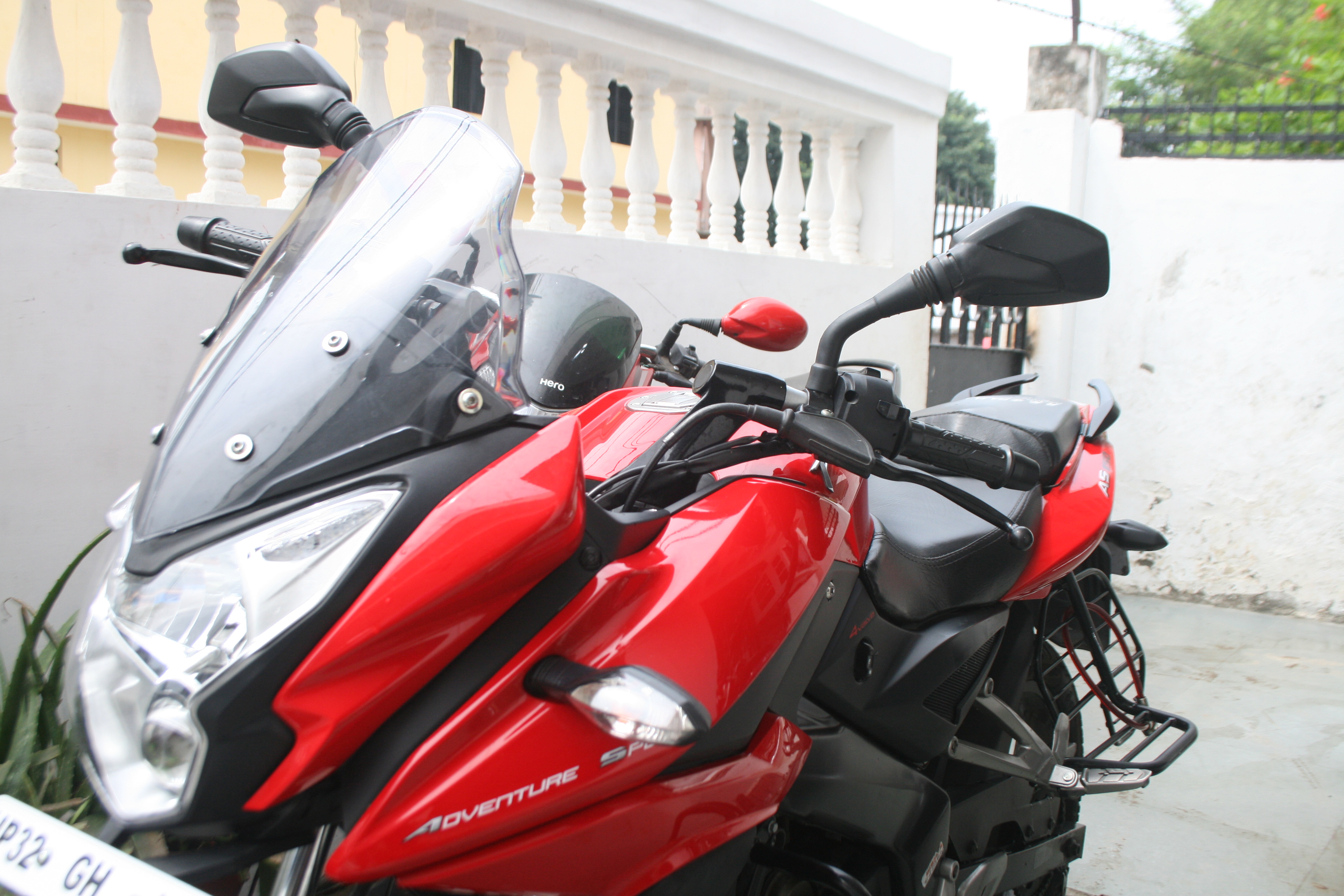 HANDLING & COMFORT* - This bike is not a corner carver, but, will give you enough lean to enjoy twisties on a weekend. The seats are well cushioned and are very comfortable for long riding. The seat height is on the higher side(805 mm), so if you are shorter than 5'5" then plzz think twice before buying this adventure.(I am 5'6"). The handle bars are upright so the sitting position is not aggressive giving you a comfortable seating position for long rides and daily commuting.