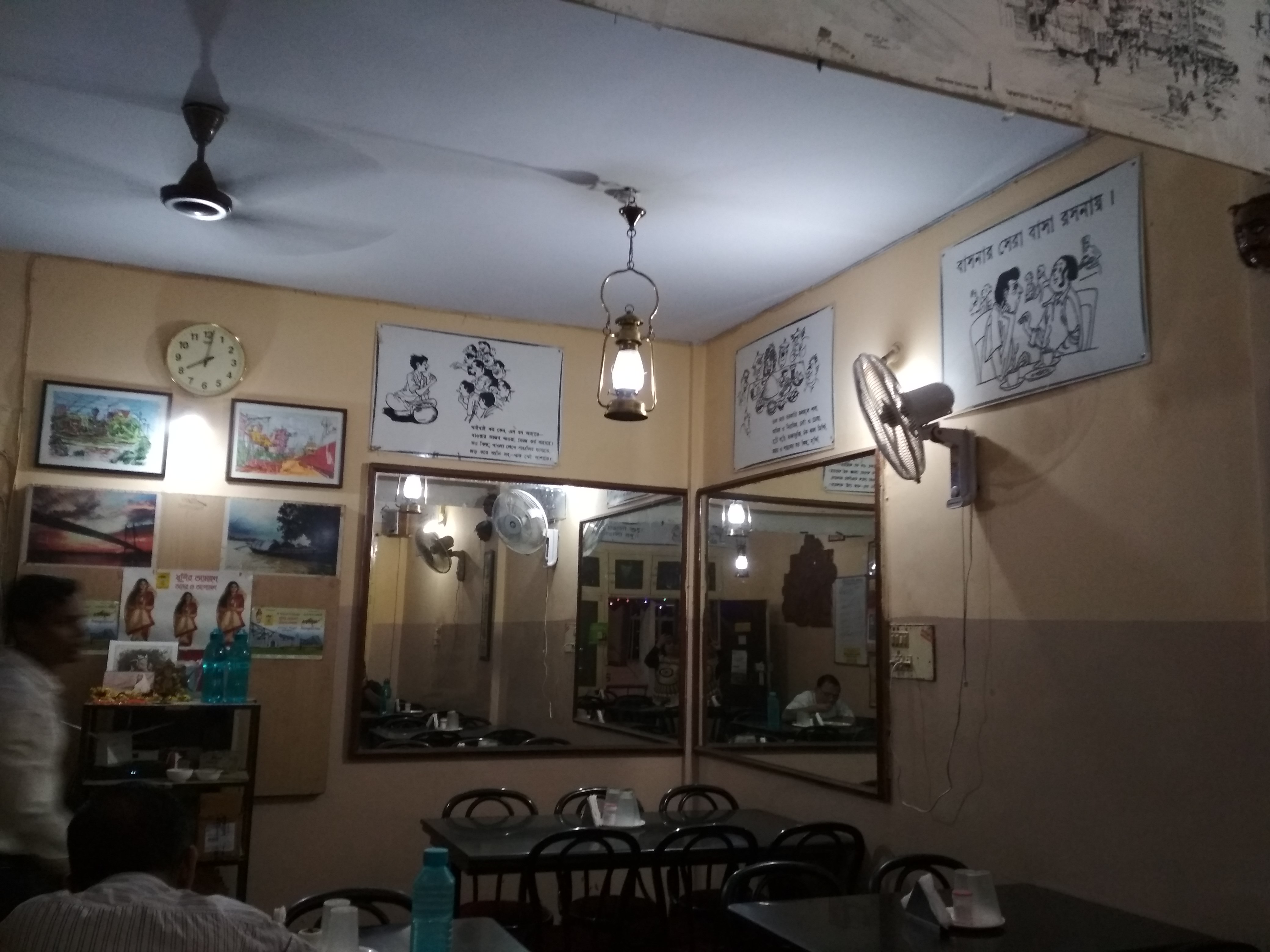 The restaurant is in the 1st cross road - the lane between A2B and Udupi. So, we warmed up with a cup of filter coffee and then proceeded. The outlet is, however, in the 3rd floor and quite taxing to climb up. Nonetheless, we took it positively as it would make us more wanting! the walls of the staircase are nicely painted, paintings representing Bengal. The decor and arrangements are nice and modest. There is one terracotta art of Goddess durga and lantern shaped lights. Don't expect the luxury of a five star. The staffs are courteous and serving time is less. My friend had crab while I ordered "Pabda" fish. Food is tasty and at reasonable price. I remember my Pabda jhal was rs. 300. Prawns, Hilsa and Pomfret were also in similar range. So was mutton. Veg delicacies like posto, mocha and dhoka are also tasty.