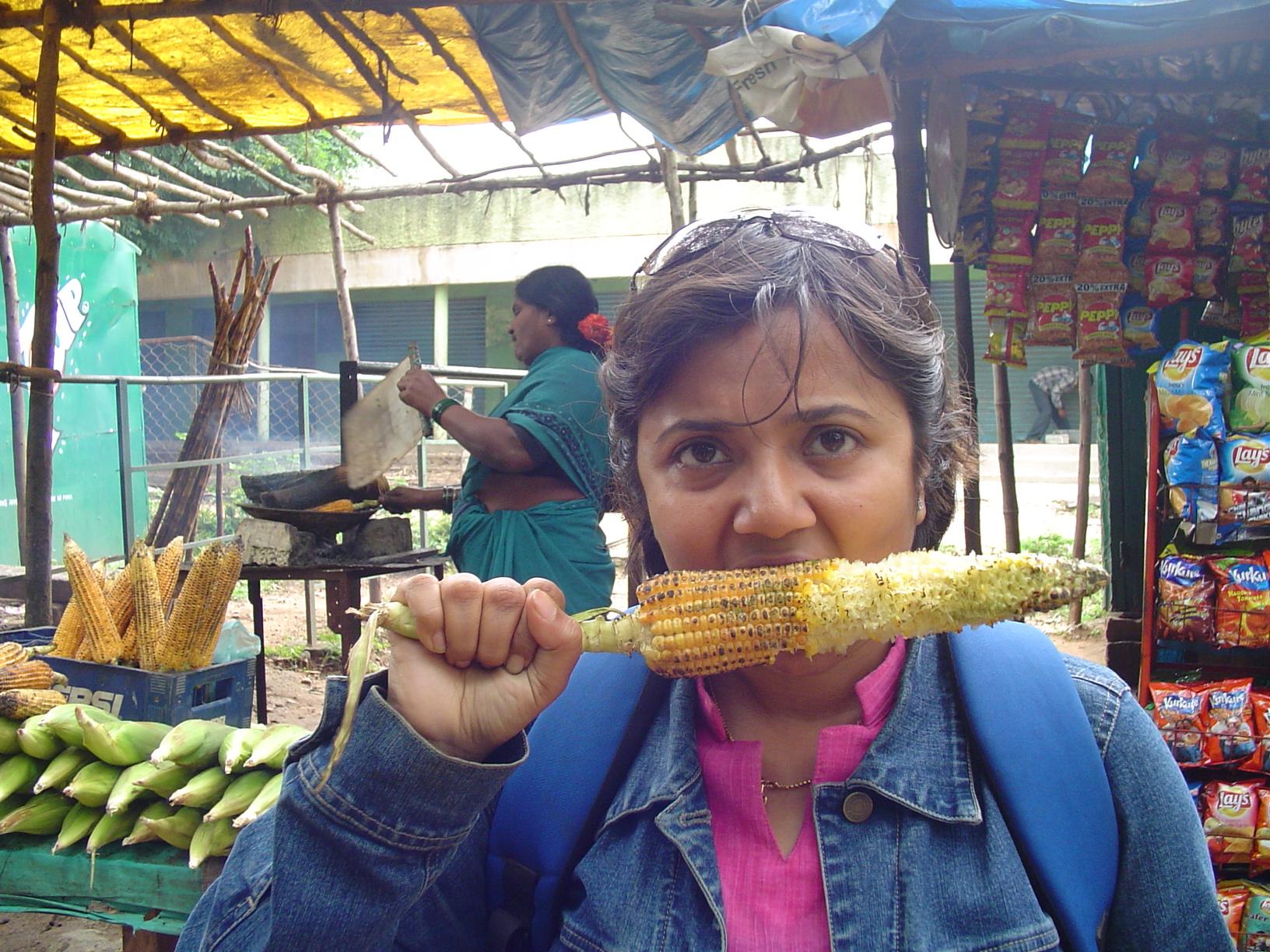 The van kept moving, on the way got to see the ROFLing [that’s how the photo is named by Santosh] lion, the sherni - while on her morning-walk on the wrong side of the road. Before even this tigress could realize, the journey at core part completed & we were back to the main area. Now something sizzling could only help me to keep myself awake. And there I noticed the bhutta. Oooowwwwah!! With lot chatni & nimbu made the roasted corn more yummy. And now we head for zoo. Starting with my bhai-bandhus - monkeys from various parts on India.