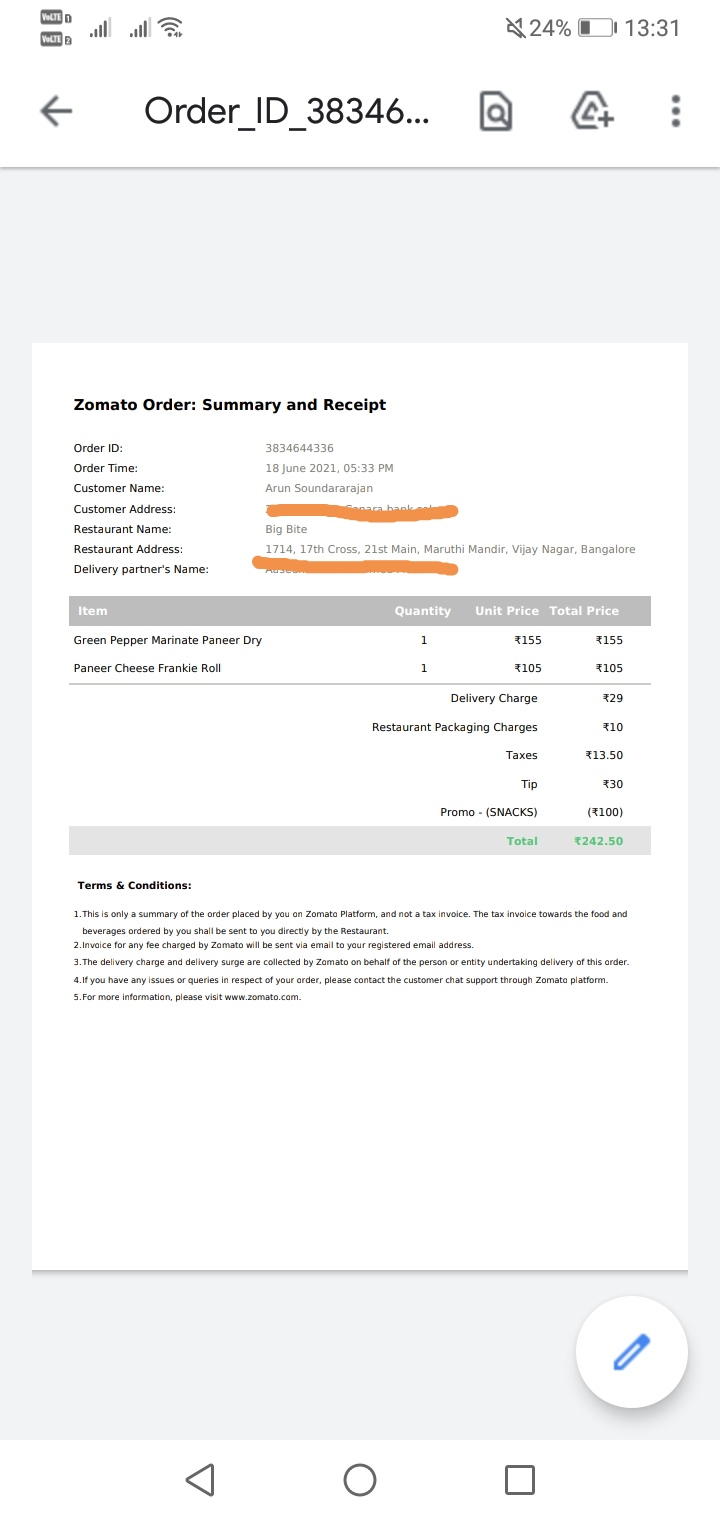 Have ordered from here via Zomato and Swiggy.