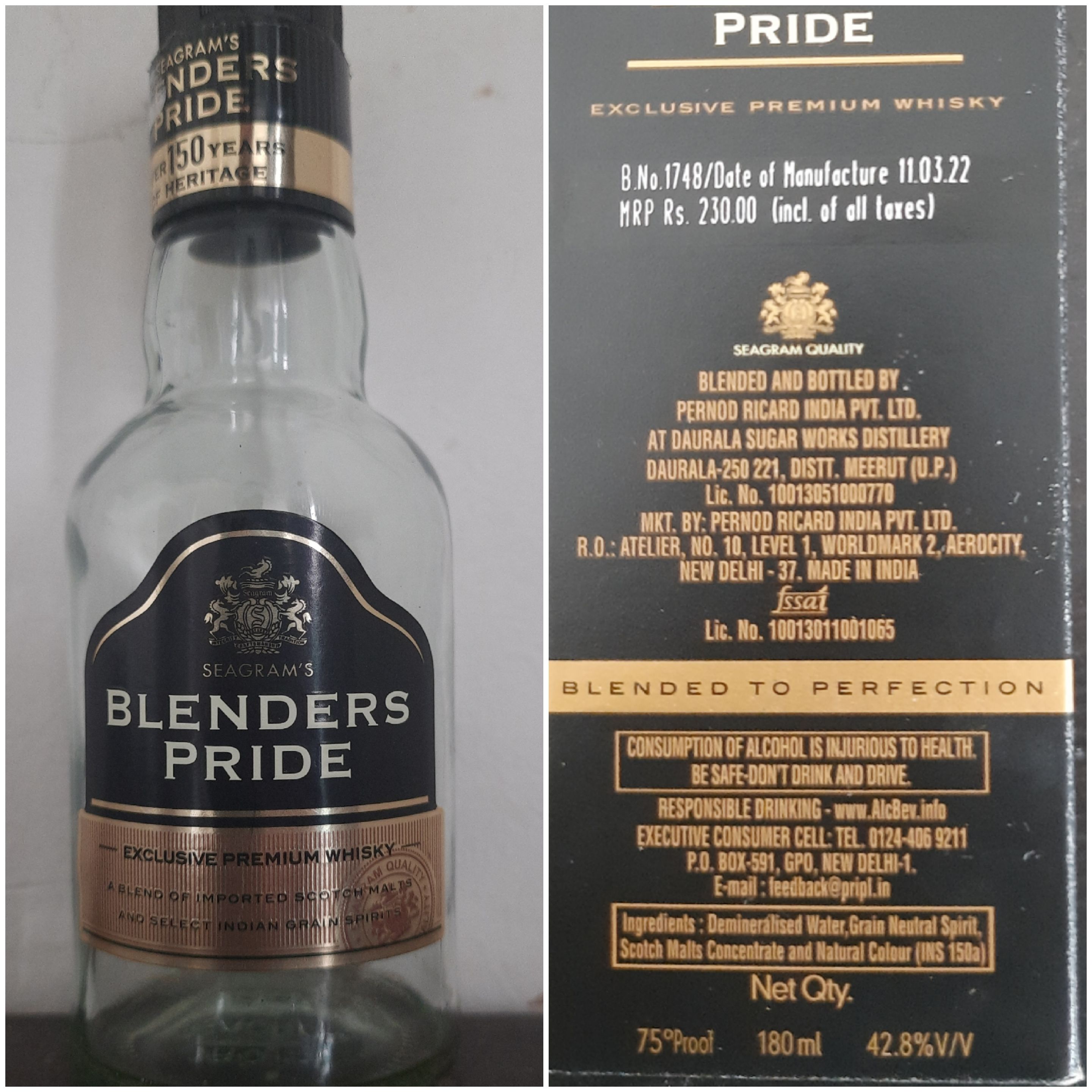 I heard a lot about Blenders Pride. That, this is the most sold brand in this price range. So, I thought to try in the Month of May, 2022.Let us first talk about the price. In May, 2022 the MRP printed on the bottle was Rs.230. However, my nearest wine shop charged me Rs.250. I do not know the reason. Because all the other brands he always gave me on MRP. The one reason may be as I already cited is that it is most selling brand in its price range. So, demand is high and supply is less. Alchohal content is 42.8% like any other whisky. Now let us talk about the taste, effect and hangover. Truly speaking I do not like the taste at all. Even the Royal stage which is Cheaper to BP tastes better.Now talk about after effects. It hit me like any other low price whisky. So, certainly not a value for money. Even next morning and whole day I suffered from hangover and upset stomach.I do not know, if I got duplicate product. Because it may be possible, as I already stated for this product demand is high and supply is less. However, if it was the original product, I would not recommend anybody to go for BP in this price range.