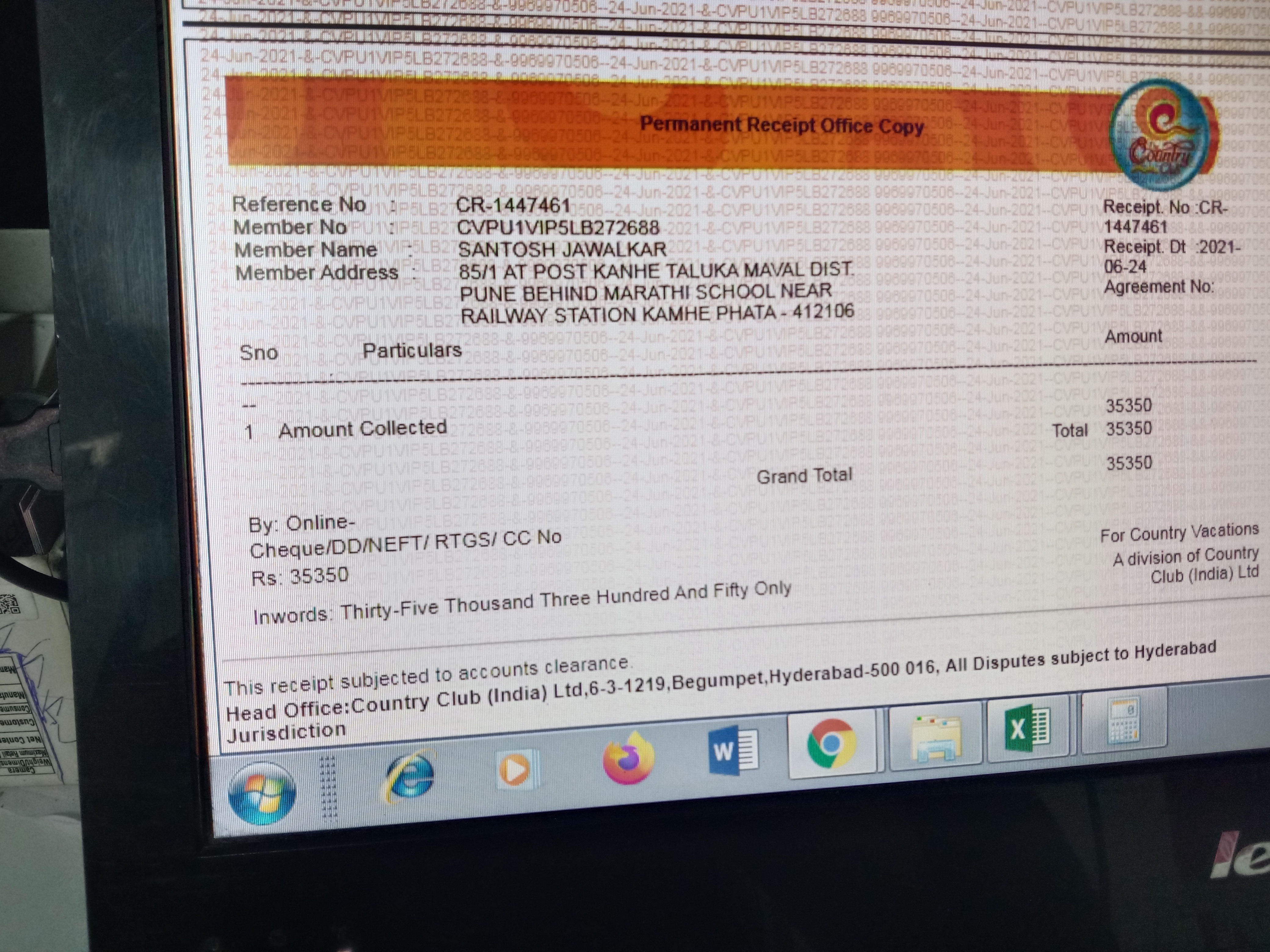 a) I have purchased this scheme/membership with Rs.35000 Rs and Sr. consultant Mr. Janardan Kaushal, Emp ID:- CVPUFC3139 told me that this is the highest discount that I have got from the Country Club but the same scheme/ membership was offered to me with 33,310.03 only. Also offered below benefits: