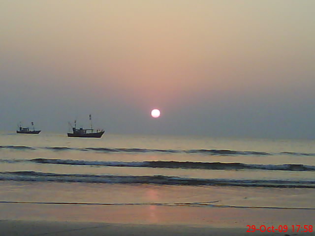 Next day morning I got up early at 6 am and was suprised to see many lights moving in the see. I walked down towards sea and saw many fishing boats moving around. I never had seen so many fishing boats near sea beach. The view was very nice in cool dark morning.