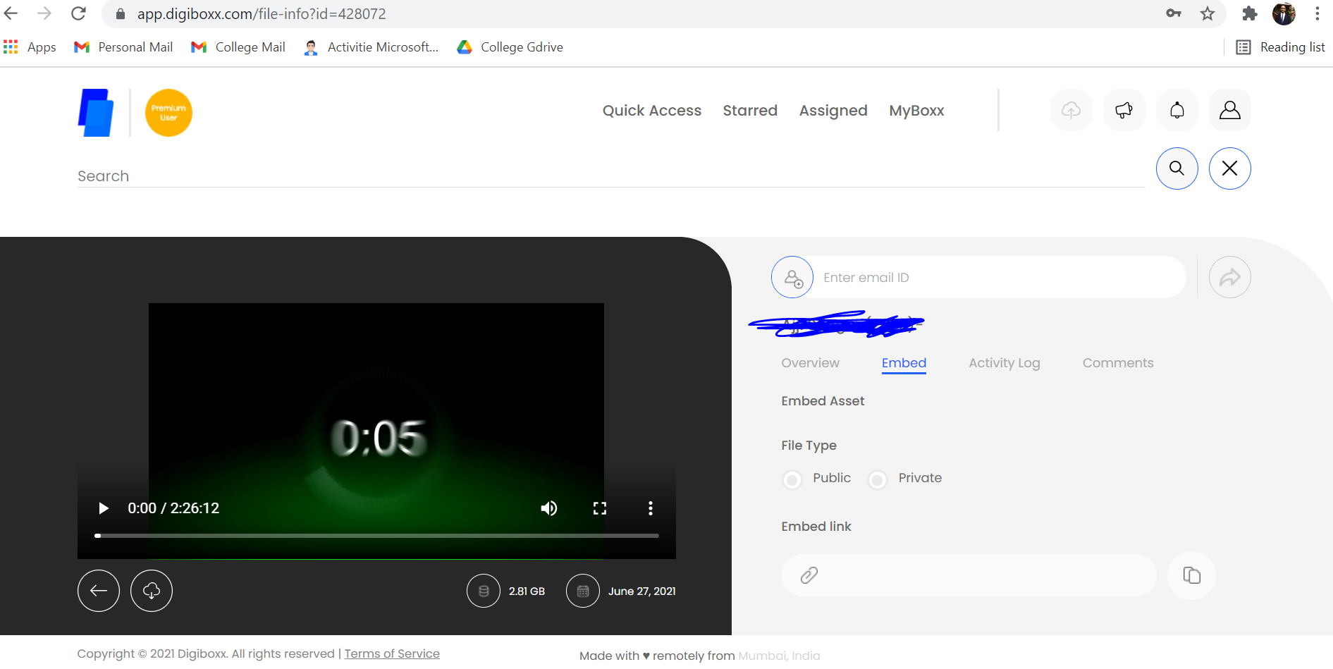 ->"Public sharing via Link": In this option one can generate link for the content which can be then viewed by anyone on the internet(not necessary a Digiboxx user) in a browser.