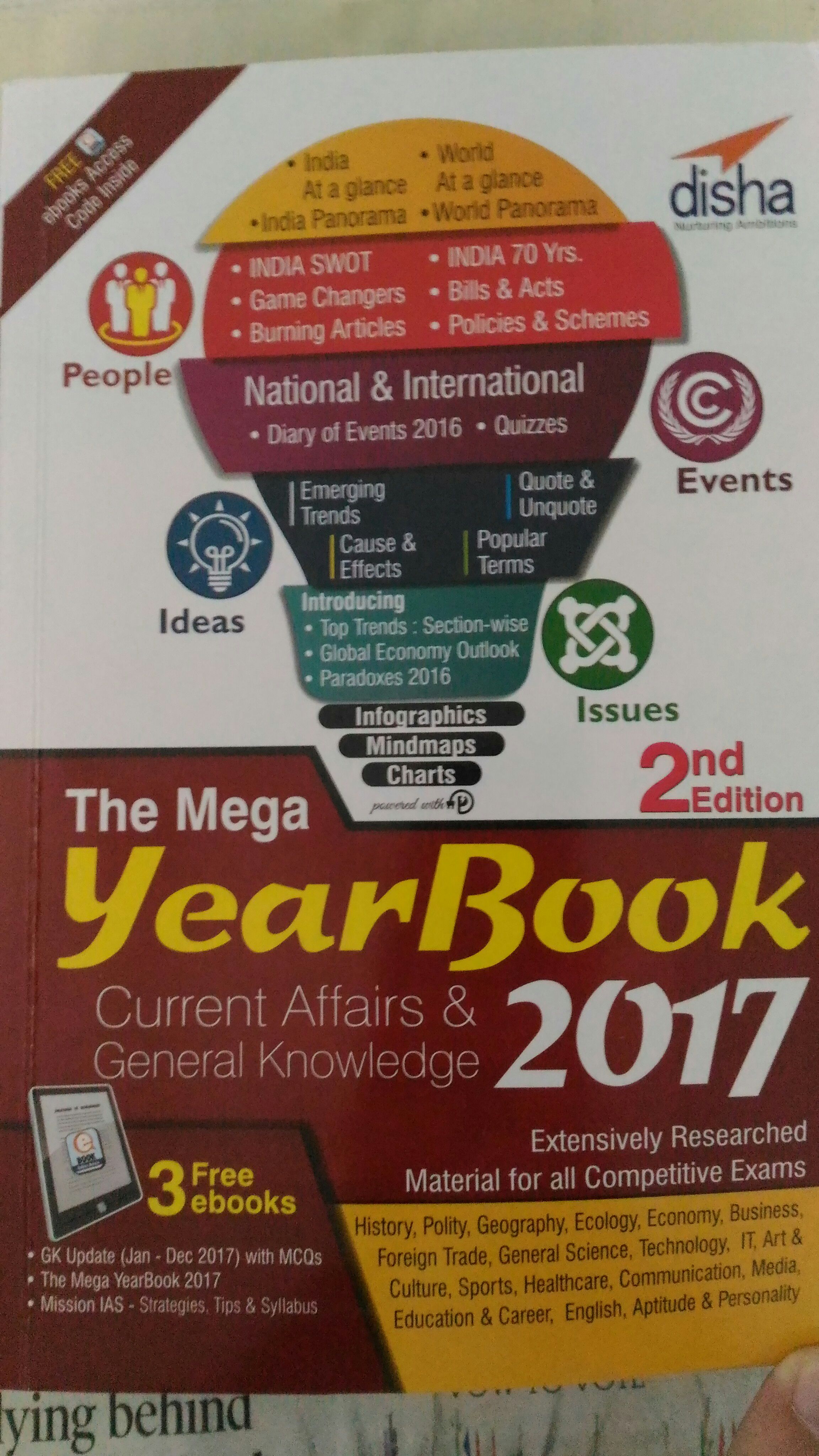 The Mega Yearbook have very important Current Affairs topics such as GST, Demonetisation, Union Budget, Donald Trumph, Railway Budget and so on. It also covers General Knowledge and Peraonality Development topics.