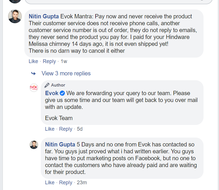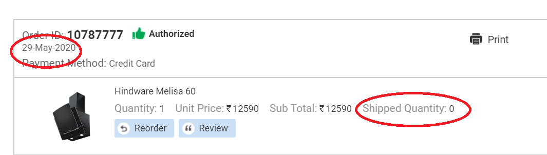 Paid for Hindware Melisa chimney from evok.in on 29 May 2020. The reason I said "paid" instead of "purchased" is because to date(nearly a month since then) there is no news of the chimney, it has not even been shipped.