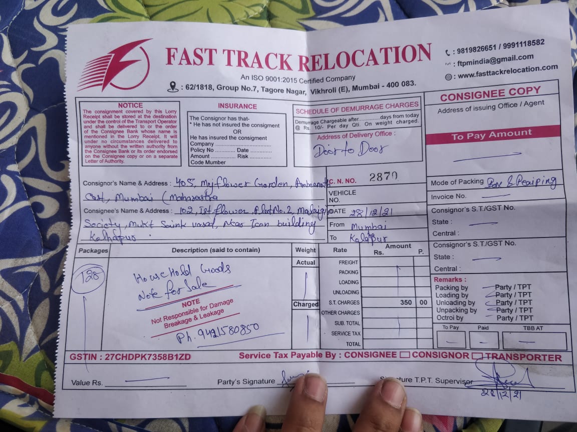I deal with them recently and the executive visited my home and gave a quotation of 25k that includes dismantling the wardrobe and beds, Ac, geyser and fans. We agreed on it and gave them the date of 28th Dec 2021 to shift from Ambernath to Kolhapur.