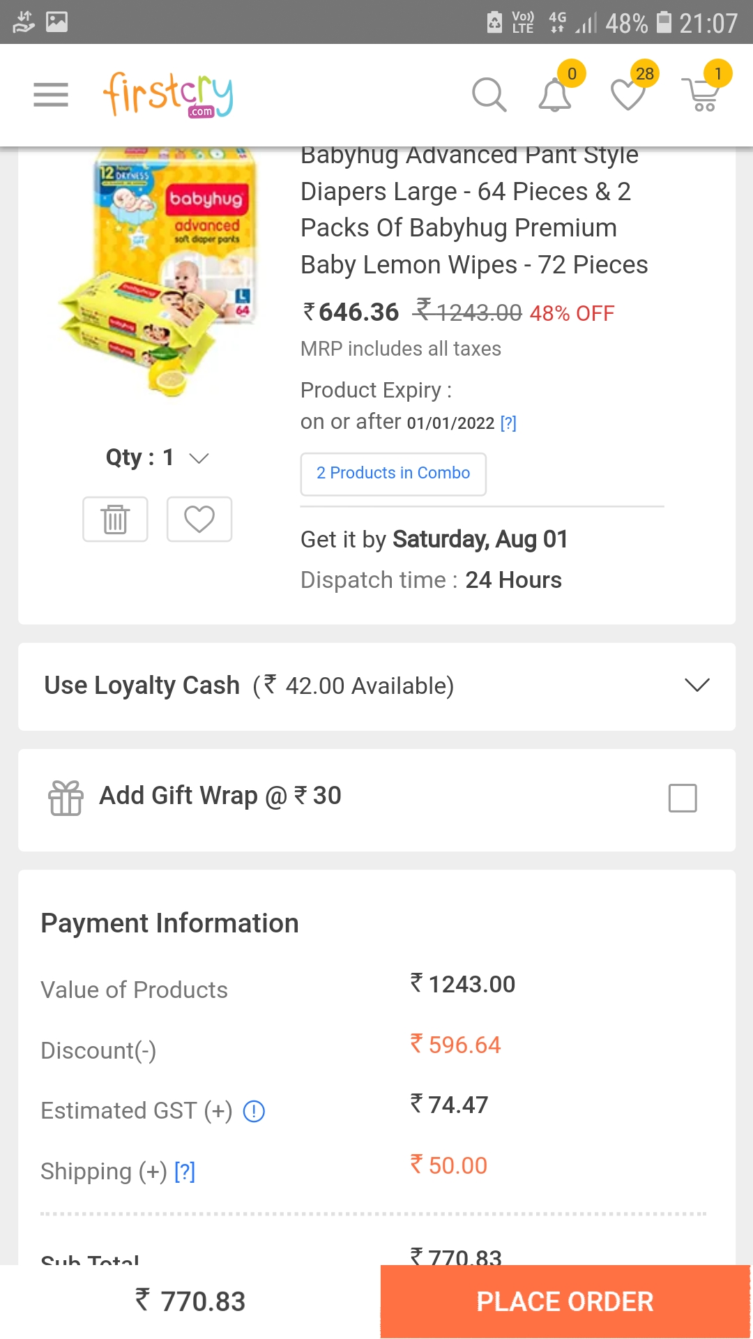 So I would recommend this online store only if you want to buy Toffyhouse, baby hug, babyoye clothes in a good discount or else you need a specific diaper brand. Otherwise, you can find better offers from the Amazon brand without being surprised by GST tax.