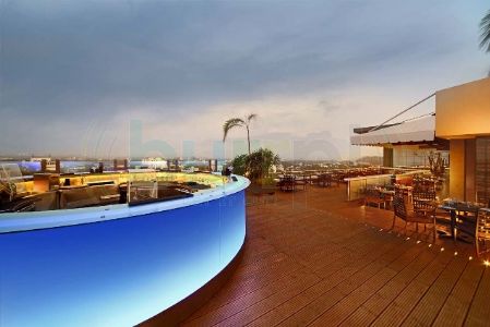 Once we reached we checked out for the ideal place as there were 3 options. One was open sky deck with acrylic sheets to allow full view of the night cityscape. Other was a covered buffet area opening to the same city view and third one- a lounge with nice and simple decor. The place was nice, lively & tastefully done. Comfortable seating, spacious table arrangement and well designed bar counters. the lamps, wooden deck, small waterbodies and ambient lighting make the entire place come alive. This being the tallest building on the road, offers a wonderful city view with hills, greenery and city lights.
