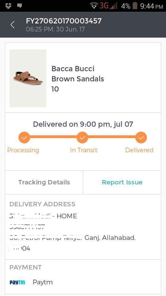 I would like to share my shopping experience from Fynd app and I Bought a sandal from Fynd app on 30 June and I Didn't Receive any tracking Details From them and today it is showing as Delivered on July 7.