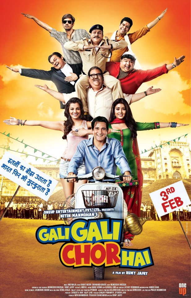 There was no scope for music (Anu Malik) in Gali Gali Chor Hai. Title song (picturised on Kailash Kher) suits the mood of the film while the romantic track and item song (Veena Malik) were unwanted. Gururaj R J’s cinematography was strictly okay and failed to shoot the well-captured locales of Bhopal. As for Bhopal, it’s nice to see that the city is fast becoming a hub for film shoots (Ek Vivaah Aisa Bhi, Raajneeti and Aarakshan were also shot in Bhopal).