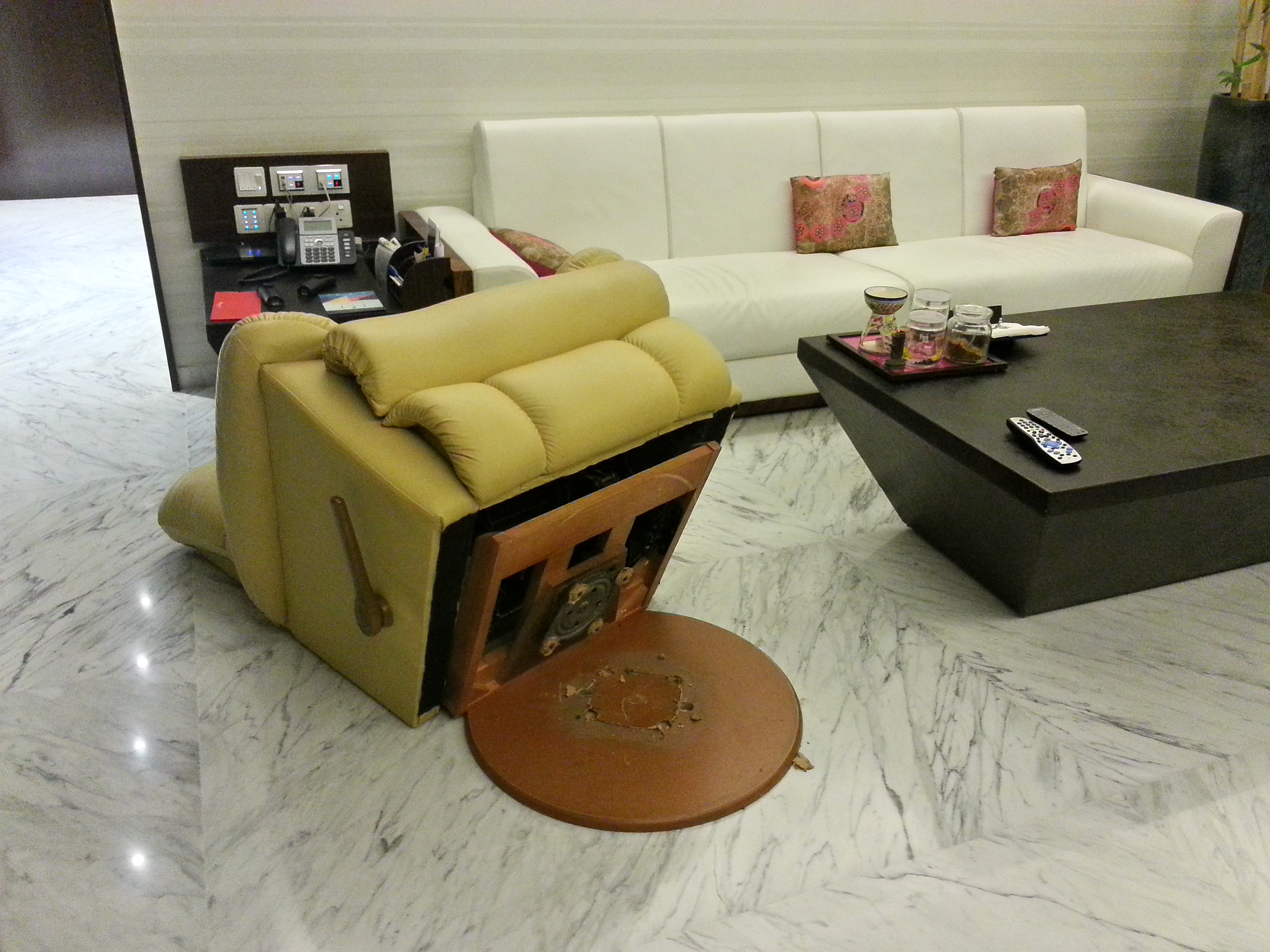We(my family accompanied with our architect) also, went in with that conviction, wanted to buy a full sofa set and a recliner. The recliner was in a sense not what we went in for, it was for a sofa-set, but since we had checked out other international as well as local brands, decided to take a look at the famous La-Z-boys as well. We ended up not buying any sofa-sets but buying the Bennet model of the La-Z-boy, despite it costing almost 3 times other brands. One of the reasons, besides the feel, comfort and “the NAME”, to be willing to pay that much, was a 10 year warranty on “all mechanism”. The Bennet, by default does not have a swivel-base. However there was another model(also a La-Z-Boy) displayed side-by-side to the Bennet, which had a swivel-base. The salesman informed us that they could provide the La-Z-Boy swivel base for an extra cost of Rs. 16000, (for just a little more, we could buy a local-unbranded whole recliner). Neither did the salesman clarify, nor did we ask whether the 10 year warranty would be applicable to the swivel-base or not. Come to think of it, WHY would we even question this. An upgrade to a swivel-base, by the same manufacturer, the same swivel-base, carried the same 10 year warranty, when fitted as default, in another model, should carry a lesser warranty? More so, because the “default” non-swivel base not even supplied to us when the chair was delivered. This was in 2014.