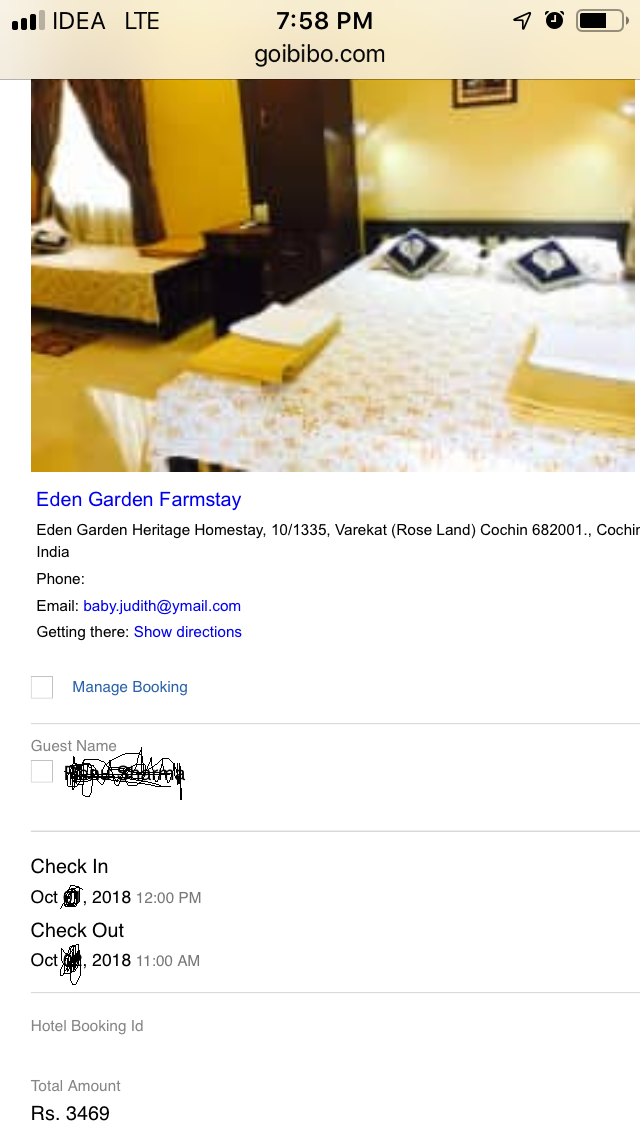 I was looking for one night stay in Kochi with price range 4000-5000, Goibibo website suggested me one Eden Garden Heritage Farmstay at around 3500 per night. Having stayed in heritage properties in MP, Rajasthan and Gujarat and Farmstays in Utter Pradesh and Haryana, I thought that a combination of both down south would be interesting and booked the property at usual rigid Goibibo policy of no-refund. The property also carried 4.8 out of 5 rating, so I was assured of standard.