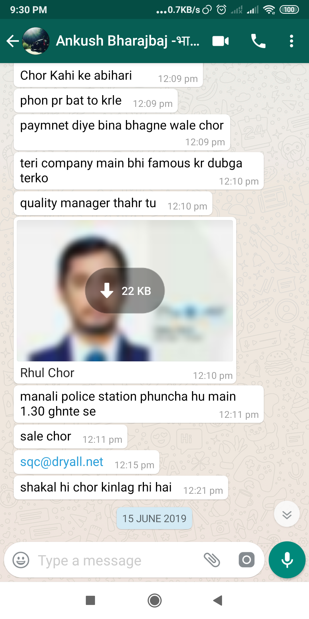 Mr. Ankush Bharadwaj again starts calling me, and start gaali and abusive language, I stop picking up the phone so he starts sending SMS, start bad language messages on my whats-app, till I was not blocked them.