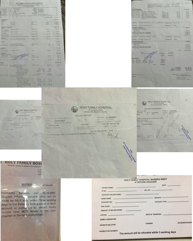 My advice & guidance will be 'ABSOLUTELY FREE'. I'm an aggrieved Heart Patient with other comorbidities, who has been deeply hurt & harassed for 3 months by Holy Family Hospital' by their' UNETHICAL PRACTICES', LIES, HARASSMENT & REFUSAL TO REFUND MY'RIGHTFUL DUES OF Rs 40, 740/-