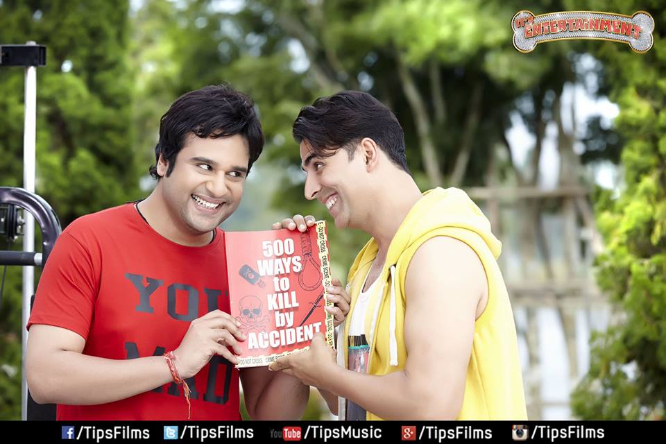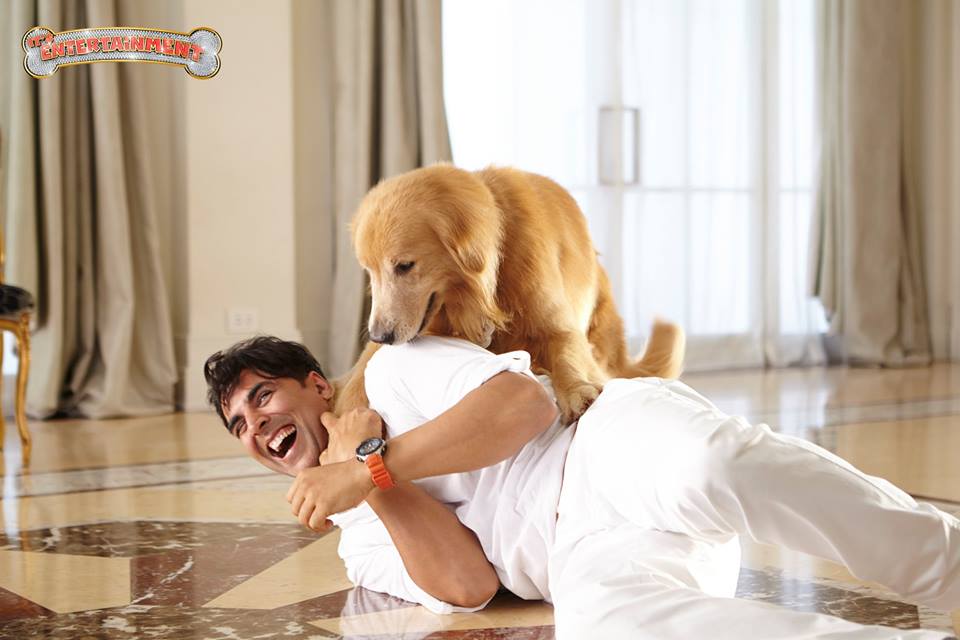 The story of the movie: Akhil Lokhande(Akshay Kumar) is struggling to make ends meet. He wants to get rich so that he can marry Saakshi(Tamannaah Bhatia). One day, he finds out that he is the biological son of the Bangkok-based wealthy diamond businessman Pannalal Johari(Dalip Tahil). Before Akhil can meet his father, Johari passes away. Akhil reaches Bangkok and finds out that he can’t inherit Johari’s wealth as Johari has bequeathed his entire fortune to his dog – Entertainment(Junior)!