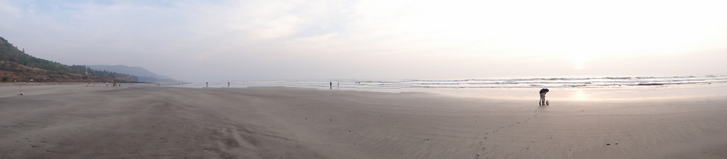 We took the Mahabaleshwar route while going (takes 5-6 hrs) and Mulshi route while coming back (takes 4-5 hours). Being early morning, Mahabaleshwar was not crowded and we could drive lazily appreciating the scenery. We had breakfast near Wai (in a nice open place called Gandharva restaurant) and fresh strawberries in Mahabaleshwar (vendors hawking all along the road). The ghat section from Mahabaleshwar to Poladpur is not in a very good state, so the going was slow. Poladpur to Khed is the somewhat crowded Goa highway and from Khed to Dapoli is a smooth state highway. Dapoli to Murud phata is also a good road, but after that the road to Karde village is extremely bad - most of the places the surface is non-existent and some places, the potholes are a foot deep. It's also very narrow, so only one vehicle can go at a time. But, the scene that greets you after this ordeal makes up for the jerky ride.