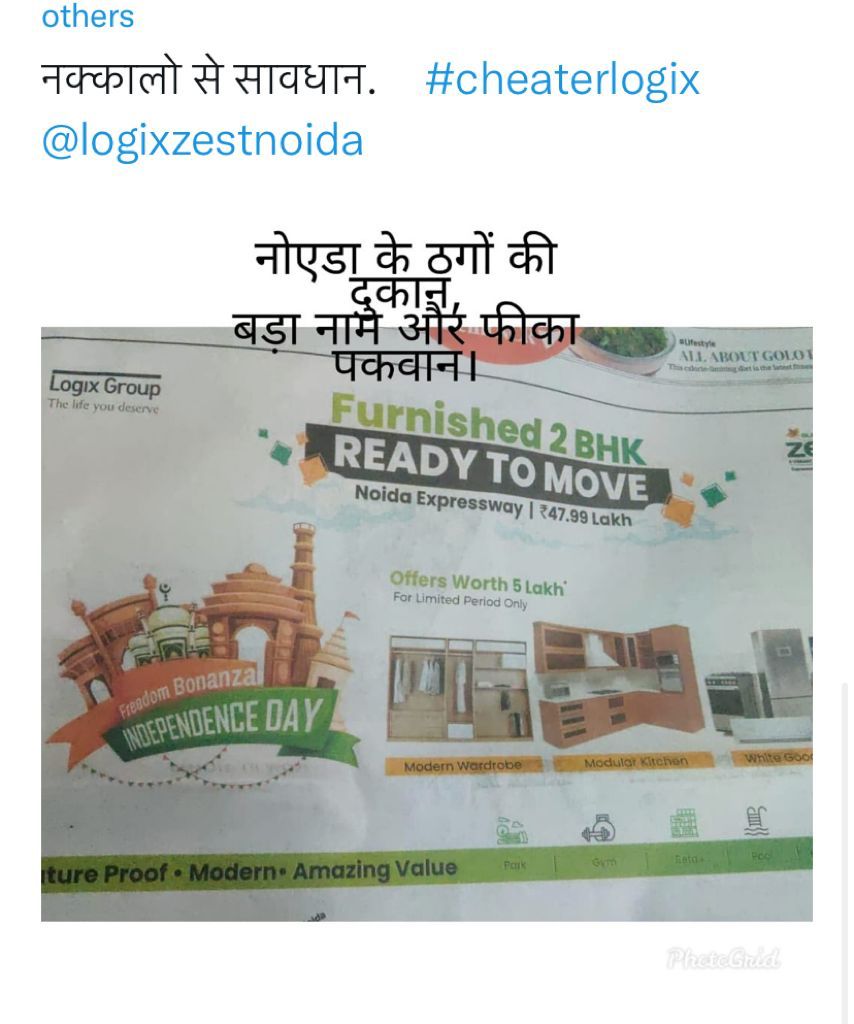 BOOKED TWO STUDIO APTS IN LOGIXBLOSSOMZEST IN 2011 AND ASPER AGREEMENT BUILDER WAS DELIVER POSSESSION IN 2013. I MADE 99% PAYMENT. THIS PROJECT STALLED FOR LAST 6-7 YEARS AND TILL DATE NOT GOT POSSESSION. FILED CASE IN RERA WHO ORDERED BUILDER DELIVER POSSESSION BY 31/03/2020 BUT DIDN'T OBEY ORDER. NOW THRU DEALERS PROPTIGER/ MAGICBRICKS/ 99ACRESINDIA/ 360REALTERS/ COMMONFLOOR & INDIABULLSAMC BUILDER GIVING FAKE ADS TO DUPE FURTHER INNOCENT HOME BUYERS WHILR MATTER IS OENDING WITH RERA & NCDRC STOP SUCH ROUGH BUILDERS MUST BE EXPOSED IN
