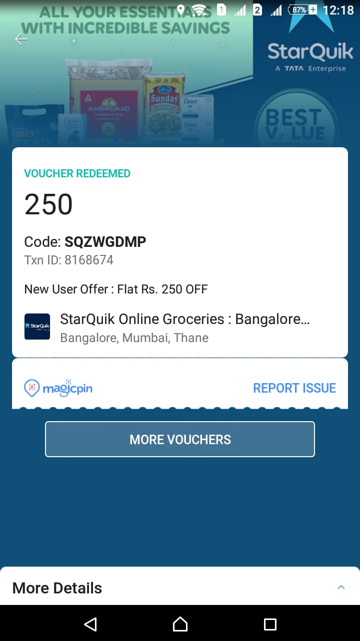 now I am sharing my experience with this app with a whole process: at the start, I download the app with the reference by a friend so I get 51 points(1point=1RS).then after I just upload my selfy and I got more 20 points. But this money I was not able to use it was not active for than I went to one restaurant and eat something then I upload selfy of that place and bill attached with that. then it will approve. after approving we will get some more points and our wallet will active. Then after I had buy voucher of Starquick app in just 30Rs. then I used it to buy so many packets. food. its original price was more than 1300 and I got it only 108.