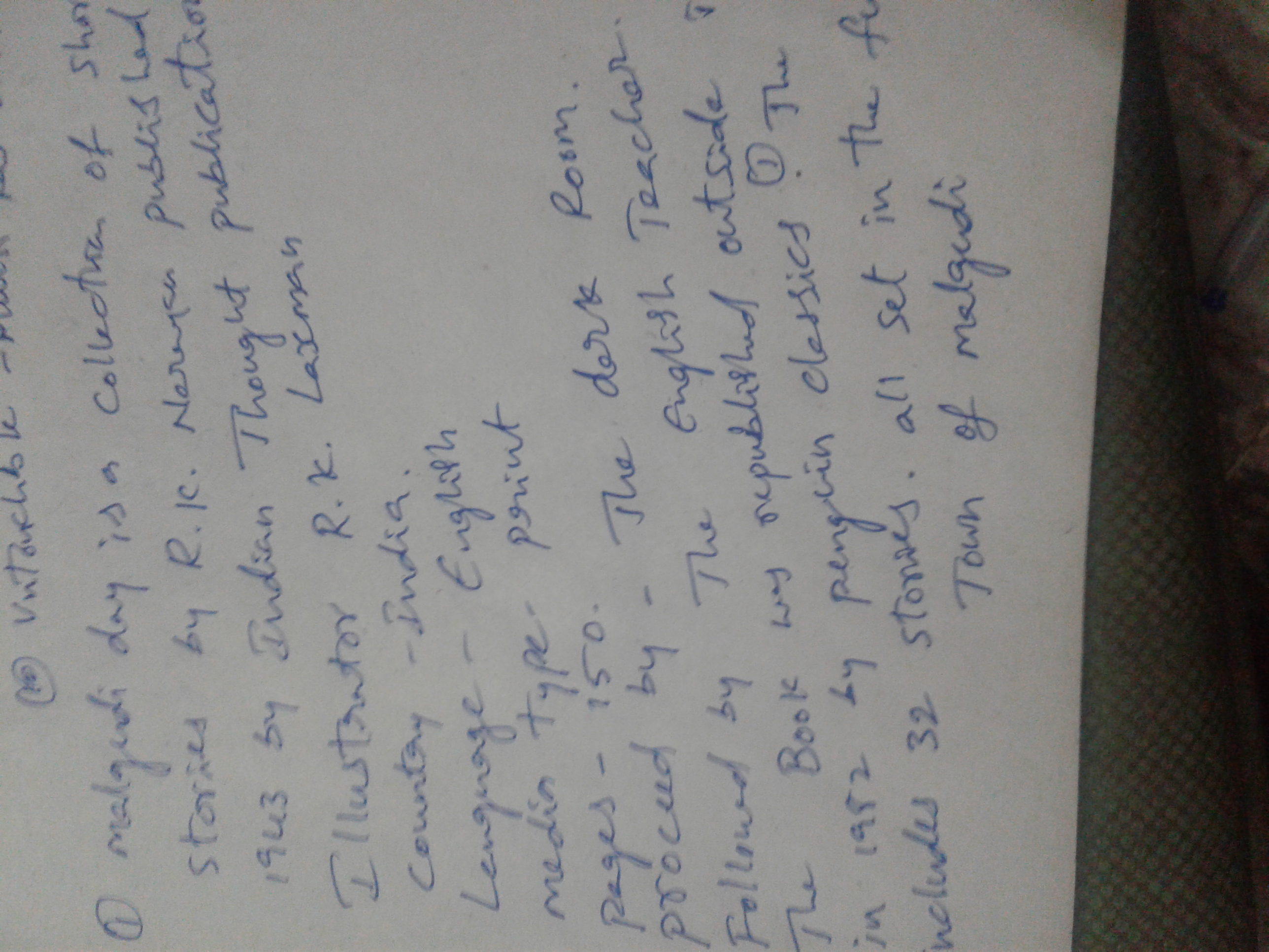 COUNTRY: India; Language: English; Mediatype: print; pages:150; proceed by: The dark room followed by the English teacher