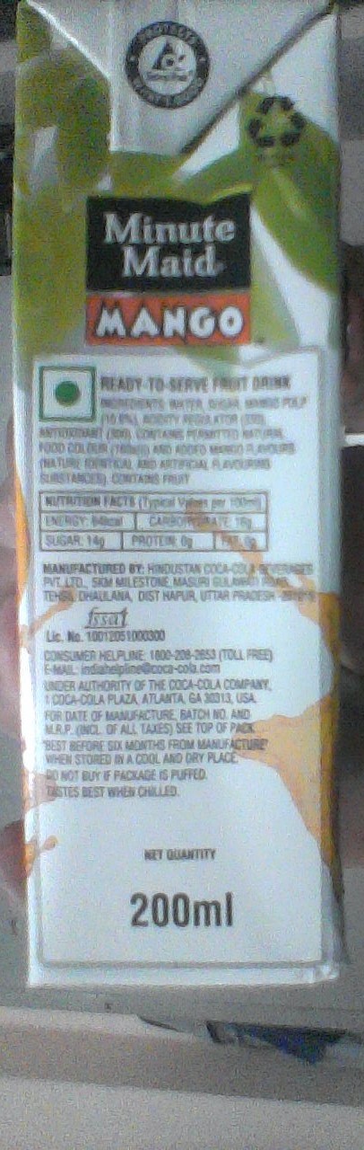 so this is all thing you get in 200ml pack of minute maid Mango Soft drink. which is available @10 rs.