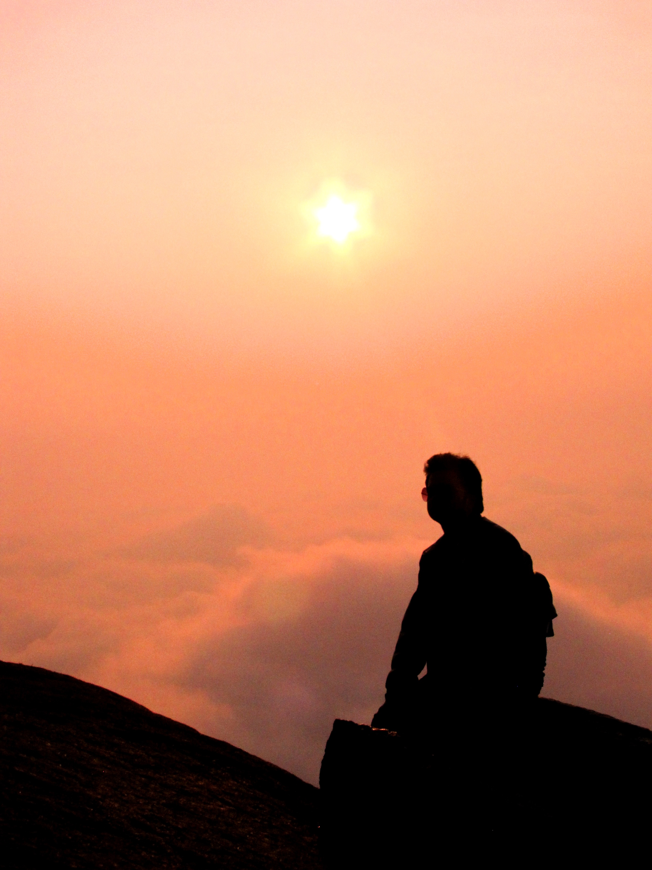The gate was one of those typical fort types entrances but comparatively small. I chose to take the forest path rather than the drivable road. While walking through the dense forest and stone laid stair path, I realised it was drizzling in patches. This reminded me of class 8 geography. Foothills get rains when clouds are obstructed by mountains. Some patches on the way were well flowered. By then I realised the sun is about to rise so I set my very dear ‘Canon SX 10 IS’ bridge camera and started clicking the ‘Burning circle’. The sun was lily red and the forest with some pine trees and other varieties of nature formed a good background for my pictures. Finally I reached the hill top but may be on the wrong side. There’s a huge cliff falling into the gorges and the only thing you can see is a stratified layers of snow white clouds(yes clouds, not mist) below you, toward the other side of the gorges and the sun right on top of it. While I lost my friends, but that gave me a good opportunity to click some lovely snaps. Otherwise my wife hates me for loosing focus on other things / people, when I’m with my camera. I walked on the edge of the cliffs to get to the other side. ONE THING WHICH IS BAD IS TO NOT HAVE ANY BOUNDARIES / FENCE ON THOSE EDGES. WHILE PUTTING ANY SORT OF FENCE ON THE EDGE OF 350 MTRS CLIFF WOULD DISTURB THE BEAUTY BUT IT’S A SERIOUS INVITATION TO ACCIDENTS. I COULD SEE LOT OF YOUNGSTARS TRYING TO GET A PEEP OVER THE CLIFF AND SOME OF THEM EVEN TRYING TO GO DOWN TO THE EXTENT POSSIBLE. THERE WASN”T ANY GUARD TO MANAGE THE CROWD AS WELL.