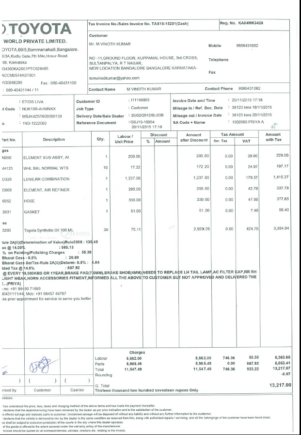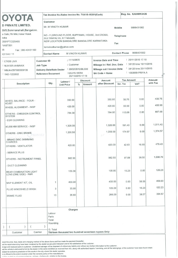 I have proof of Nandi Toyota phone calls recorded on my phone( Offers they told to me) & I have bills paid for service( attached).