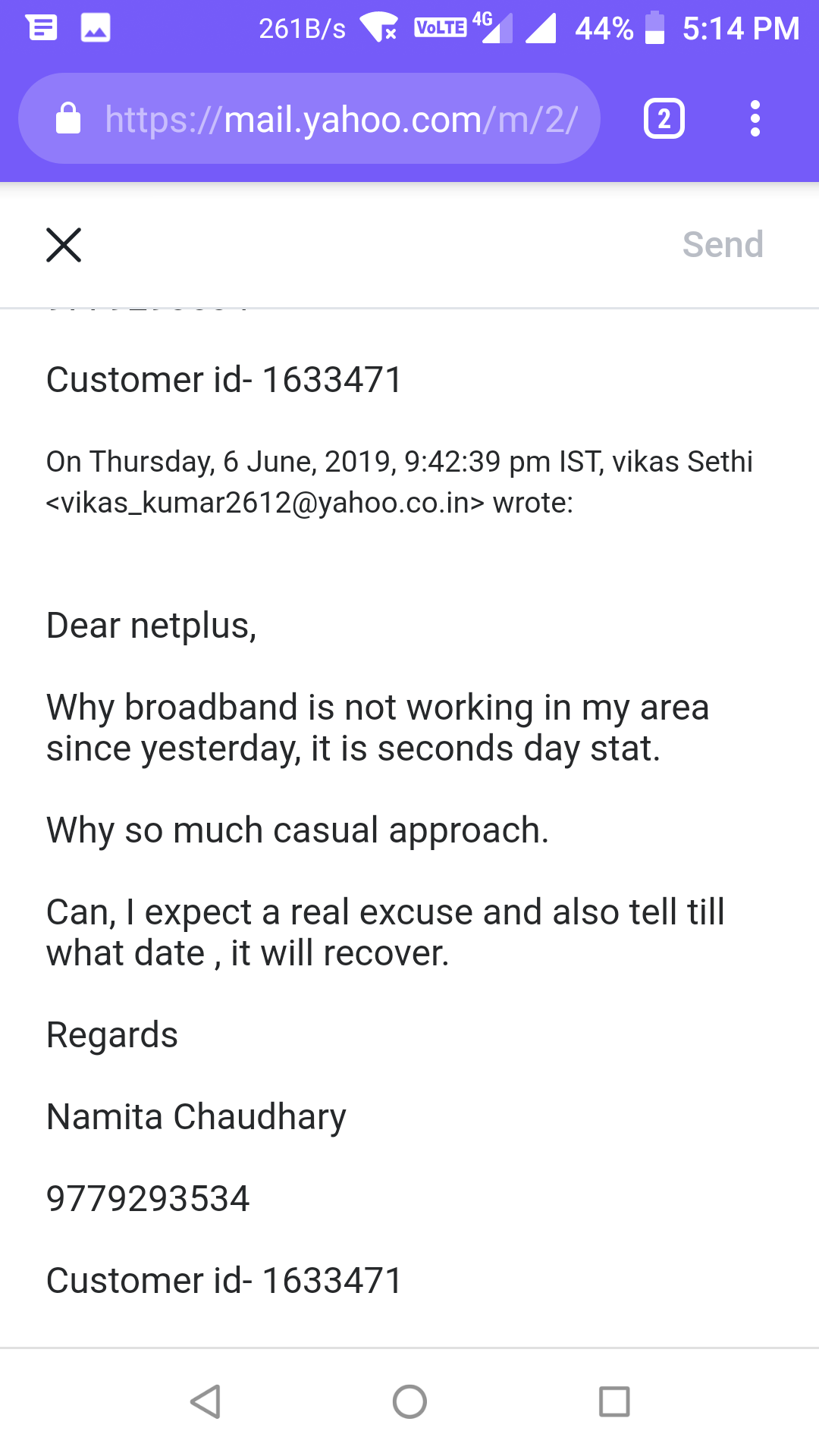 Since , 5 June , my broadband is not working, and since that day they are making excuses of network down, wire cut etc etc ....