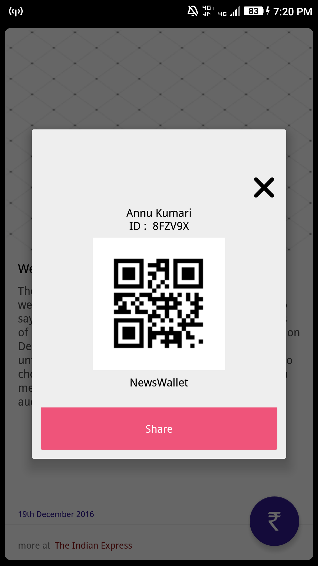 Let me, you have 30 friends on FB & 30 followers of yours is on your geniune twitter account and you share only 5 news then your minimum daily reward will be ?125 . I am earning ?340 daily . You can get above from it as not limit. One thing keep in your mind that both accounts of your as fb & twitter must have same name ( also Case sensitive.) .