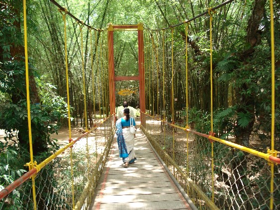 Nisargadhama or Nisabdhadhama( Nisabda in Kannada means withoutnoise)is almost a heaven on earth, with absoulte calm but for the sonorous sound emanating from the Cauvery surrounding this Island.Nisargadhama is placed in the highway leading to Madikere from Mysore and it takes about two and half hour drive from Mysore. The road to Nisarghadama from Mysore is also well laid. There is enough parking space for those who travel by their conveyance. I am not able to provide any bus details as I went by my own conveyance.