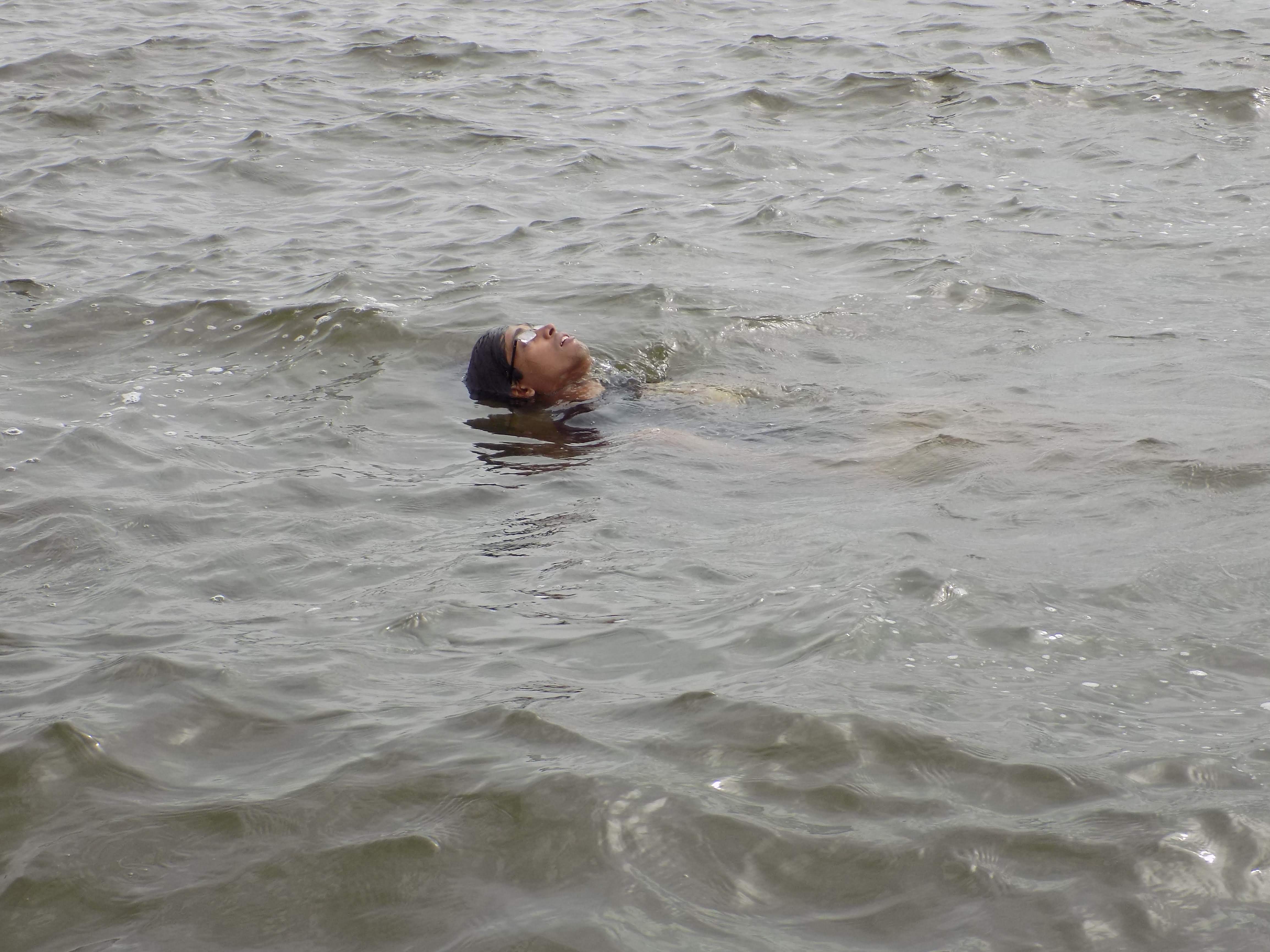 Once there, the plan was to sit by the water or enter the waters, as per our wish. Life jackets were available for those who wanted to use them. I already had my swimsuit on. After some cleansing of the toe injury, I entered the water. The rocky base beneath was quite uneven and slippery beneath my foot and I had decided against using a life jacket. Also, after about 4-5 feet of treading in the water, there were no rocks or anything else beneath my feet. Swimming was the only option or cycling to stay afloat while in standing position. After aiding some others getting into the water, I decided I would swim about a bit. Any swimming stroke which involved me facing water face down hurt a bit, as it also meant water was hitting against my injured toenail. So, I reckoned backstroke was the need of the hour. No strain on my toenails. And of course, floating around any water body like it’s your mattress is a different feeling in itself. But there were tides in this lake, which were sweeping in occasionally. So, my backstroke bursts had to be timed well. I also resorted to breast strokes at times, as it was reasonably comfortable, except pressure on my toenail. We could occasionally see kites come down to catch fish and fly back up again. I mostly stayed around the 20 feet radius from the shore. May have briefly breached the 25-30 feet radius twice. I didn’t go too far out as the water levels in the lake had risen, owing to recent monsoons and there was no telling if there were weeds growing underneath and if so, how far below the surface they were. Also, when you haven’t swam in a while, dealing with moving against water naturally without something to stay afloat can be a bit arduous owing to the stronger water resistance (compared to air) or possible cramping in your legs. Considering all that and that I wasn’t going to use a life jacket, I stayed within the distance mentioned and swam and floated randomly, giving in to the relaxation and satisfaction it provided. I think only once did someone try going a bit further, with a life jacket. Mostly, everyone stayed well within the 20 feet radius. Rightly so too, in my opinion.