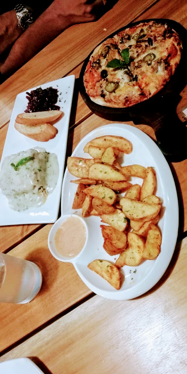They gave focaccia bread with mayonnaise as compliment. The goods didn't stop there, all the three items ordered came as medium serving, the pizza was 6 in. Everything was tasty and best thing is that being medium serving yiu can try many options without being full.