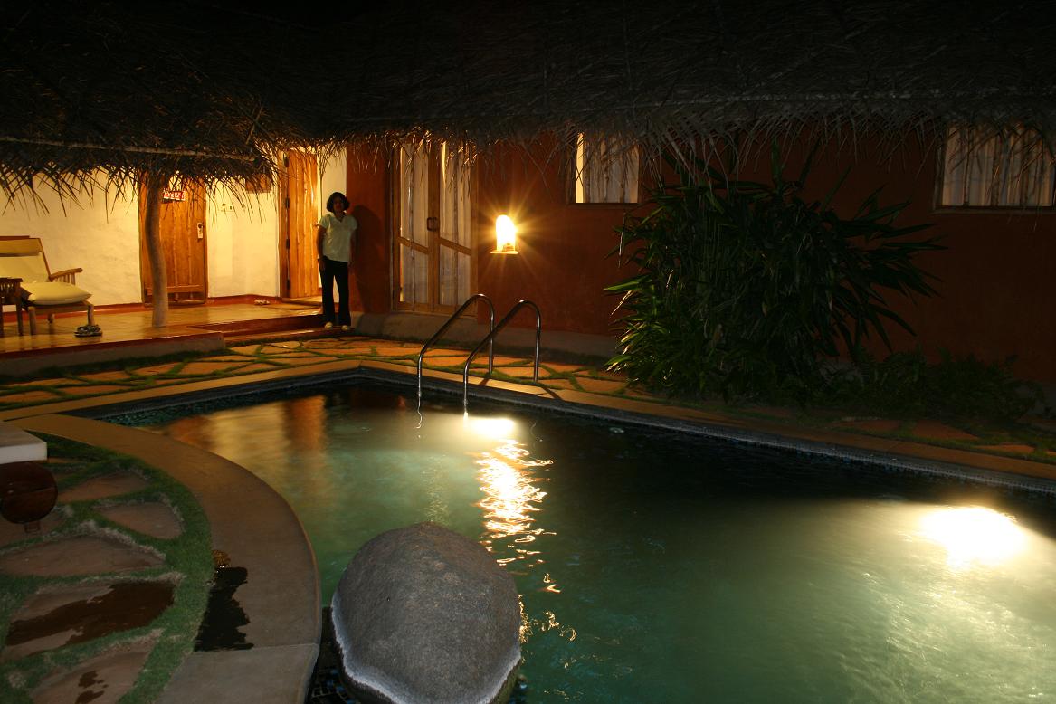 Room: **We had a to walk through the well laid stone pathway to reach our Pool Hut which was facing the river and the trees planted around the campus has a local and botanical names written at the trunk. The ethnically designed Pool Huts has a private courtyard with a plunge pool(what a luxury!) with a sit- out area and there is a small inner courtyard within the living room. Reverse Osmosis units are installed in each room that provides safe water all 24 hrs. Mini fridge is packed with cool drinks and the guests get to have complimentary roasted cashew nuts and nice chocolates too. A bowl of exotic fruits waits on the other corner of the living room on a dining table. The living room opens up to an exterior sit-out area with reclining benches to relax.