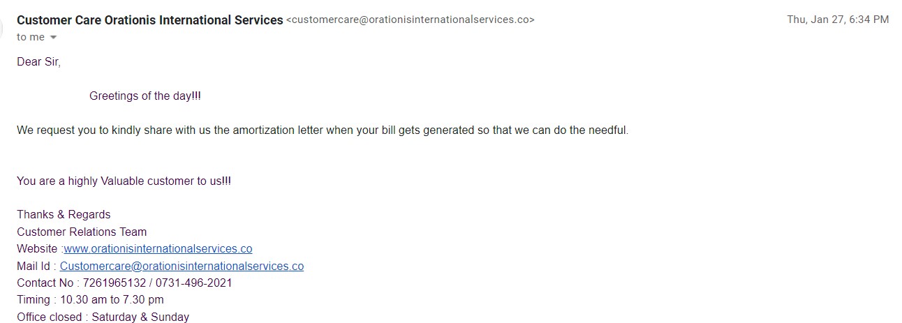 Orationis International Services cheated me with the false services, Initially, they took my details from more stores and later they invited me for their company annual function. They offered me their services with EMI options, they took my credit card details for EMI installments. They said the EMI amount will be debited from my credit card in 1st week of every month, but they debited the whole amount. I realized and approached them, again they promised me they will pay the credit card interest amount into my credit card before the due date but they are not paying the interest amount into my credit card.