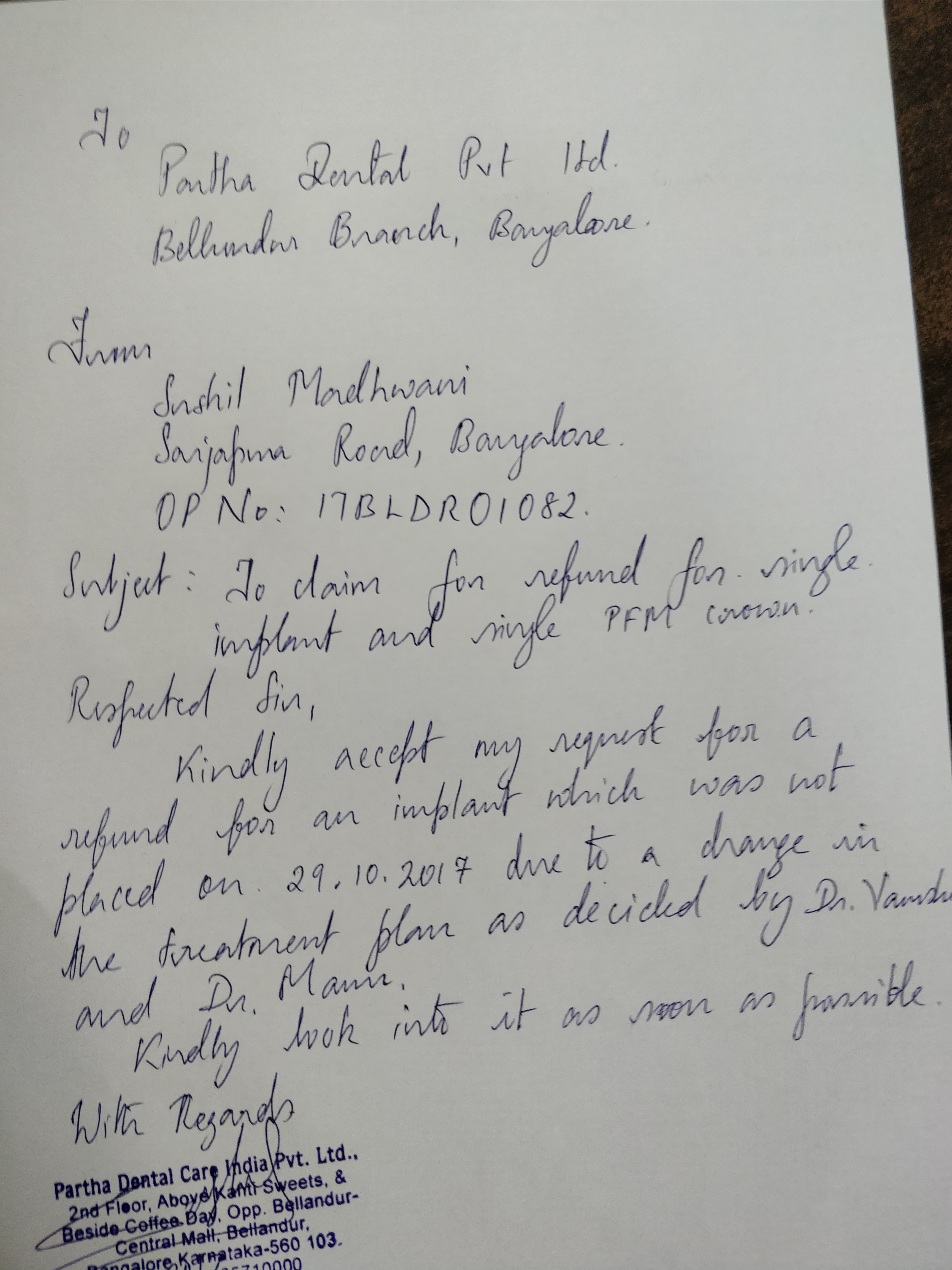 I approached Partha dental for my teeth implant. All went well till the treatment suddenly changed.
