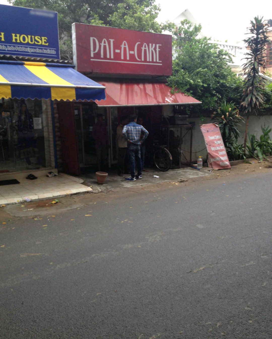 Pat, A, Cake bakery is a small sized bakery in which only 3 person can stand at a time. Its now old and their services got a lot worst too.This bakery is famous for its bullseye chocolate pastry.