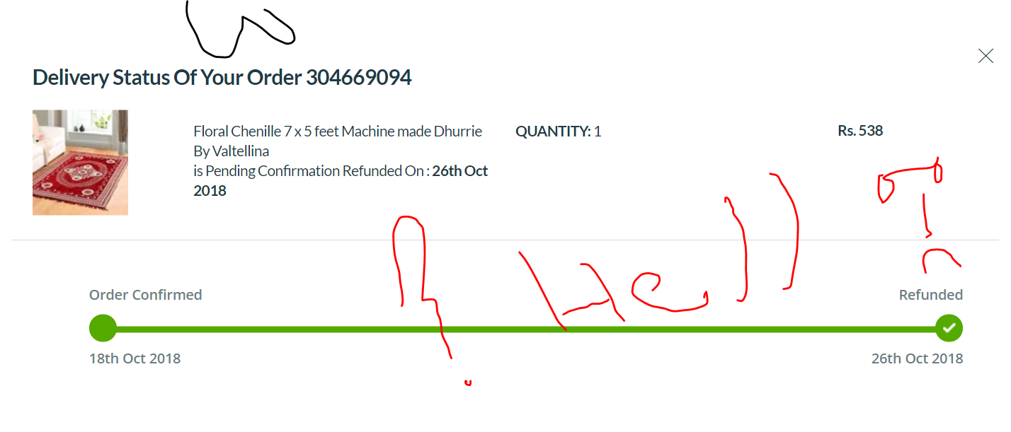 7th day got a message we are initiating the refund as we can't deliver the Dhurrie.