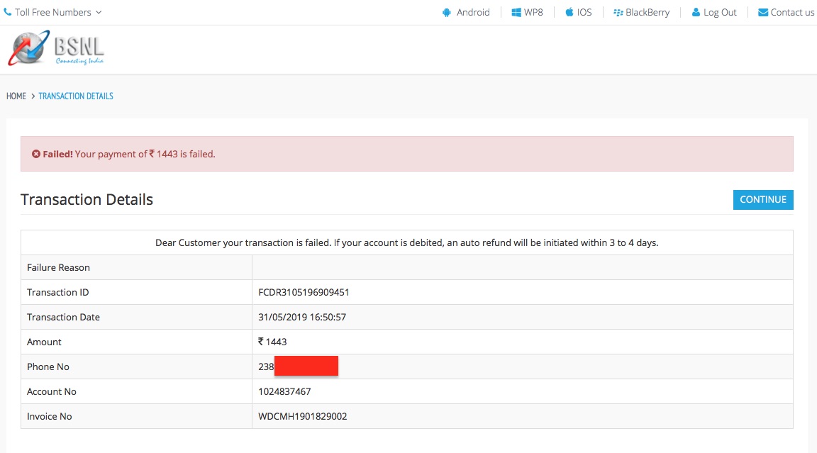 Now as per the BSNL message that said transaction was failed and if the Amount is debited from Account it will be reversed in 3-4 working Days, the very next day that is on 1/06/2019, I made my payments for both the BSNL numbers but this time I used the Internet Banking option instead of UPI option that was my biggest mistake due to which I lost my Money. And yesterday that is on 3rd June 2019, I get a mail from PhonePe that says my Transaction is successful and also now the Application of PhonePe shows those transactions in my History and with a Successful message. But now my biggest problem here is that a Failed transaction becomes successful Transaction when I was waiting to get a refund for my failed transaction as I had already made payment for the said transaction but with a different mode of payment.