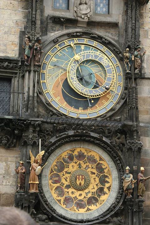 The clock itself is one of the oldest astronomical clocks out there, it shows you the position of the sun and moon, the procession of the apostles on an hourly basis and some activity of "a skeleton" and also an indicator for months. Quite a sight.