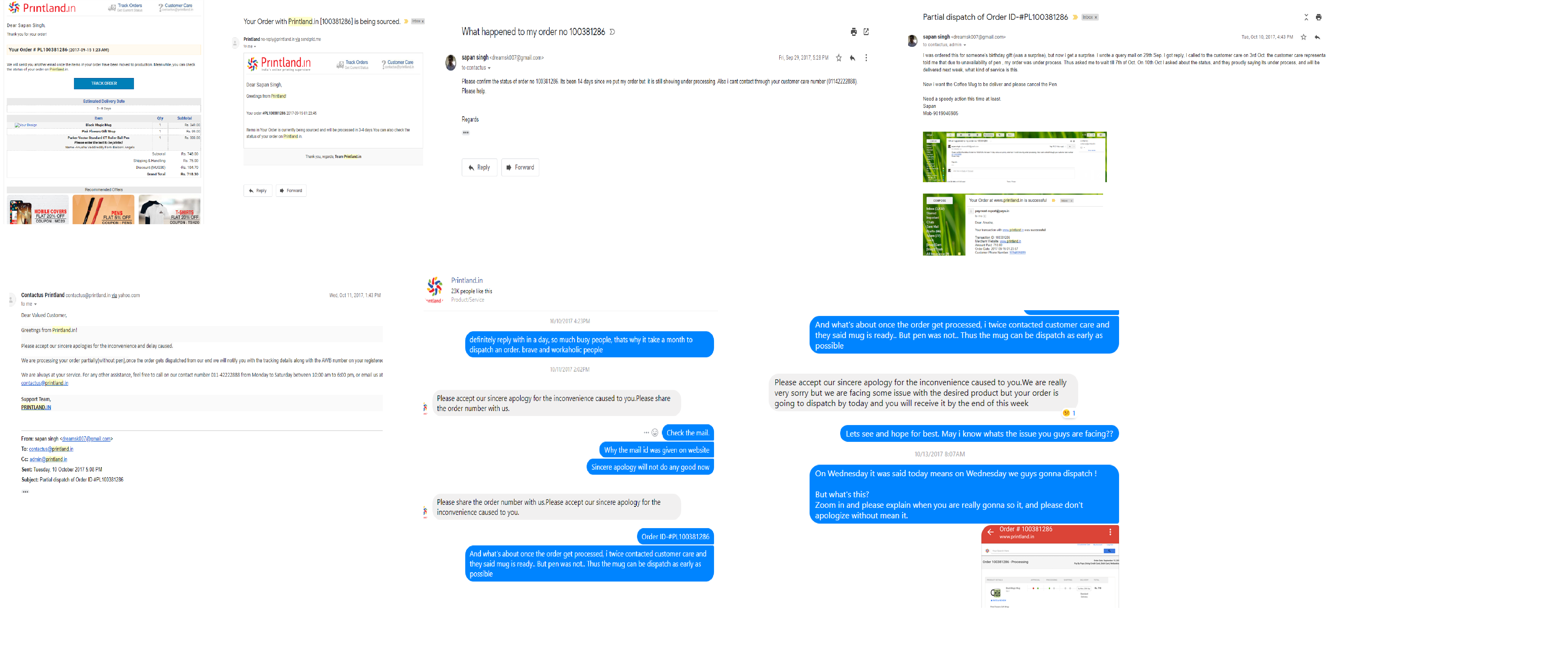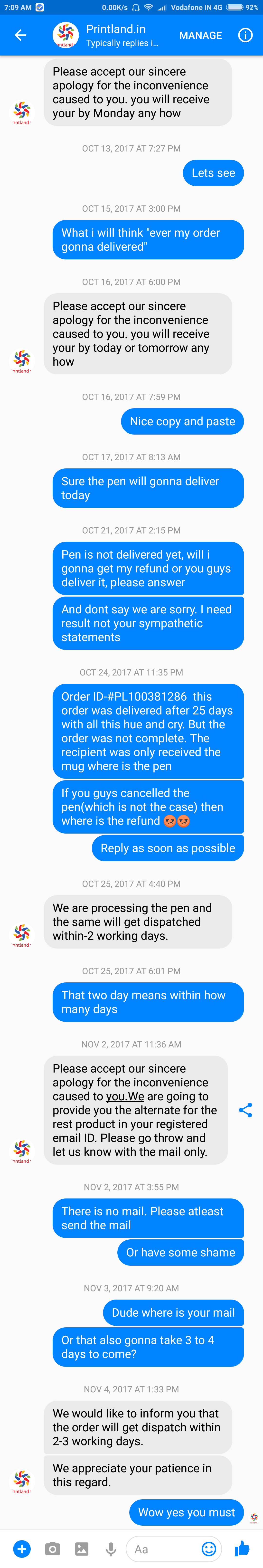 Thank god they have a facebook page, I just keep on writing negative comments on their post and also started message on messenger. That yield a reply from them. Attached all screenshots. after a month I got the mug delivered, then after 10-15 days pen was delivered. It was a birthday special gift. I can't comment on the products, my sister says those are good( obviously, she can't say those are bad, after all she is my sister.)