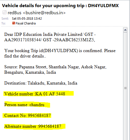 The bus which we booked via Redbus for a corporate team outing was from 6 am - 10 pm on Sunday 6th May 2018. First and foremost until the last moment i.e. 1:30 pm of 5th May 2018 there was no intimation of the driver/bus details as promised. We had to call and coordinate with Mr. Punith Mehta(Bangalore based red bus employee – ph no:+91 9513331517) multiple times for the bus details, which ideally should have been given to us by default. On top of that, Mr. Punith was mentioning about his personal issues while talking to us and the reason for the delay(dropping mom to the hospital, in hospital etc), which was nowhere related to professional help/ behavior. Post this followup we finally got the details of the driver. Two different driver details came in SMS from the bus vendor & email from the Redbus.