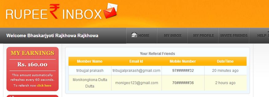 This website pays while you read emails and send referral links to others. This website claims that if someone signs up through your referral links, then you get credited with Rs. 50 for each sign up. Many friends of mine signed up through my link, but I got credited with only Rs. 100. You even won't get payment after completion of tasks. The threshold payment is Rs. 1000. There is no surety of getting money after collecting of threshold amount. So, I suggest you all that never waste your valuable time with this website.