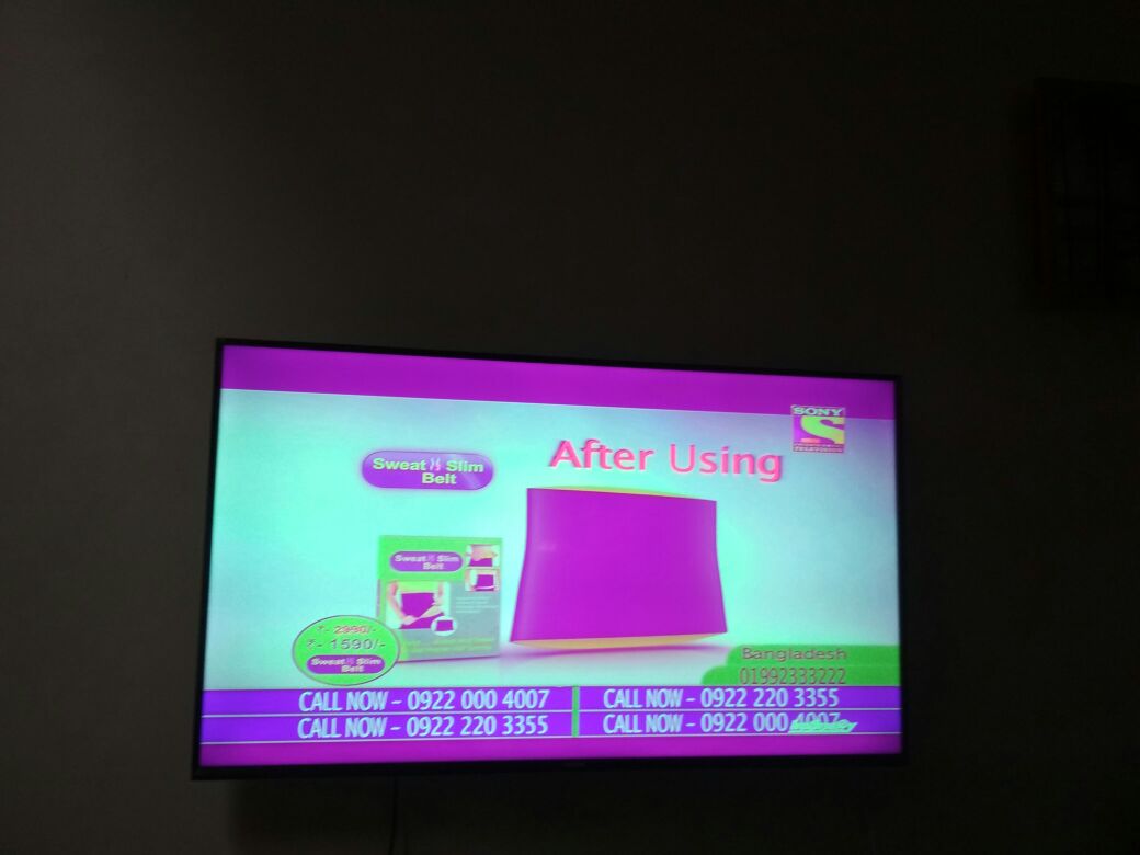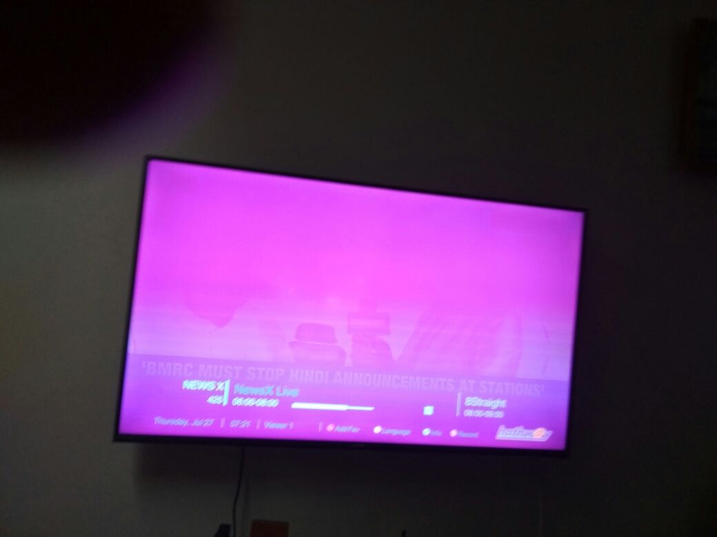 1.On putting on the TV, many times, the screen gets suffused with a purple colour. Then the programme also shows against that colour. We then have to put off the TV and put it on again, for the normal colour to return.