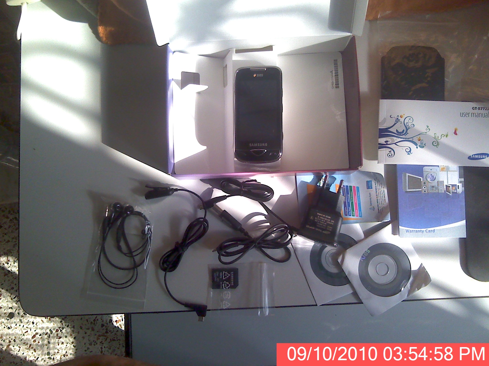 You can see the attached photo for the standard accessories that I got in the box. Its micro usb-3.5mm jack converter, a 3.5mm earphone, Travel charger, USB cable, 2 Kies cd, 2GB microsd card with adapter & Leather case. Though this phone was made in Sept 10 still an updated version of Kies is available on net. I have put the unboxing video review on Youtube https://youtube.com/watch?v=_FhIZBcLOE8