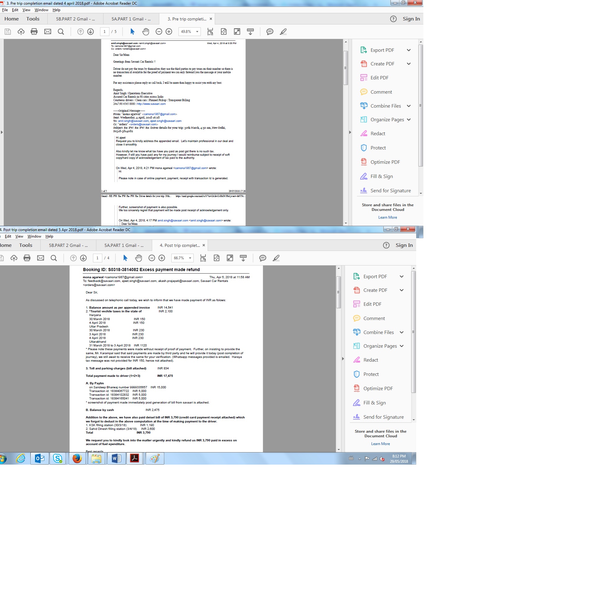 I have made excess payment to savaari on account of fuel expenses incurred on behalf of Savaari of INR 3, 790 which I forget to deduct at the time of making the final payment. – Oral Intimation and written intimation both provided immediately post completion of the journey on 5 April 2018, still, Savaari team turned deaf to hear.