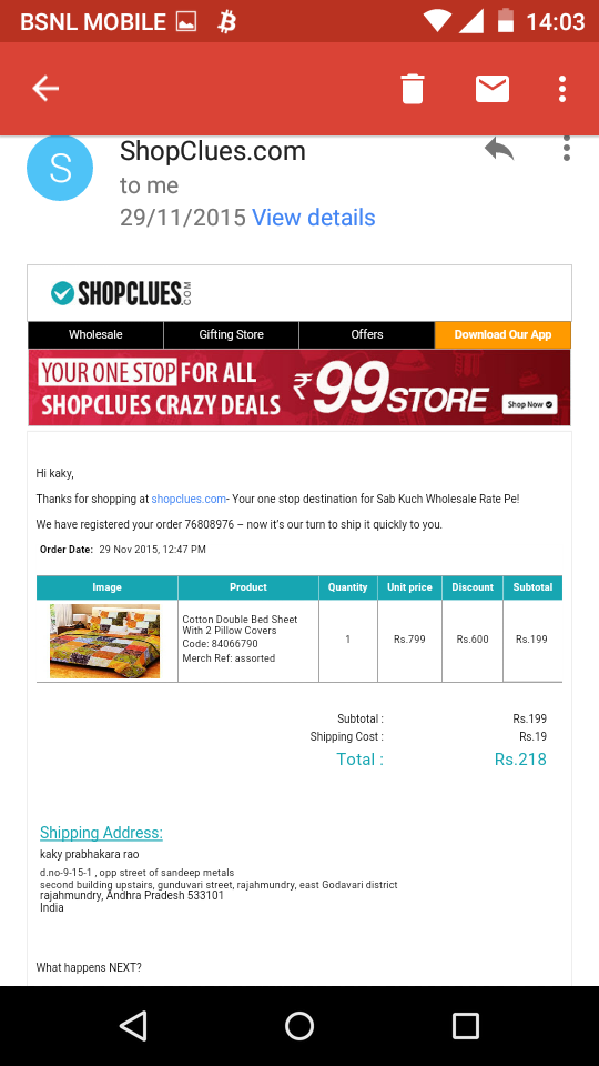 I got attracted to this website because of the discounts offered on the products but later I repented for doing so. My first order on this website was a bedsheet .I ordered for one bedsheet but they sent a different bedsheet with a totally different color and design. . When I raised a query regarding it they said that you are sent what you have ordered only.