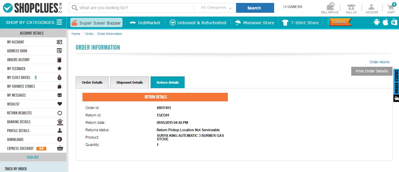 I had purchase Order ID 49017451 SURYA KING AUTOMATIC 3 BURNER GAS STOVE amount RS .1945/- from Shopclues website. It was come at my home after 15 days. when I open a box it was looking so stylish & modern. I just open it & connect to gas cylinder after that got gas leakage smell in my house. immediately I was close gas connection & call to Gas Service engineer to look that issue with new gas stove. when he come he was check all connection of cylinder after he check New gas stove he was told do not use that shegdi(Gas Stove) because its very poor quality & 3 leakage in burner, its very low cost Chinese gas stove. do not use it. after his statement I was really in shock. After some discussion with my family member I decided to return it. but I got reply from shopclues customer care your area dont have reverse pickup facility. so I go to local courier agency charges for that courier it was 700 Rs. I just inform shopclues customer care for courier charges should be paid by them, they told we can only pay not more than 200 Rs. on that time I really feel very bad. after few days I was scrab that gas stove & earn 100 rs. so please take care before purchase such type of heavy item which is not easy to return.
