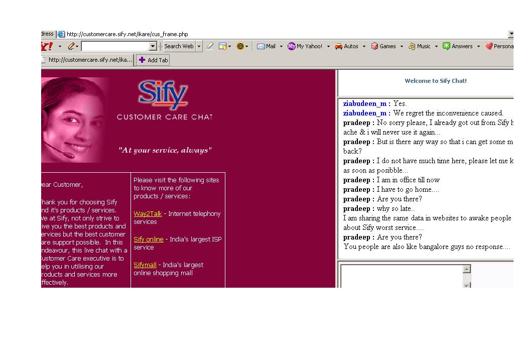 I also chatted with the Sify Chat service before I wrote this comment & told them I am going to share this in website / also asked is there any way to get some money back but there also no proper response. (Please see attached figure for your proof)